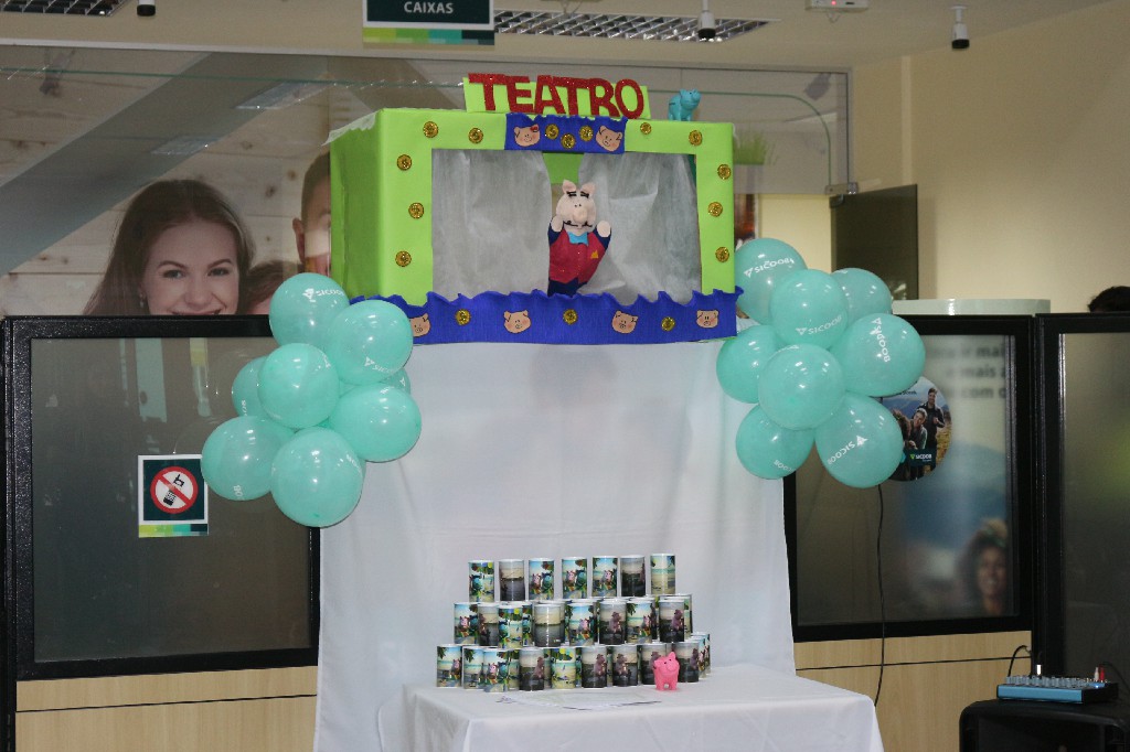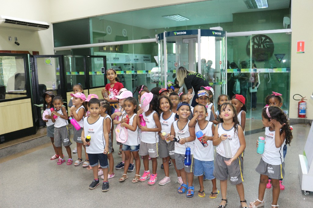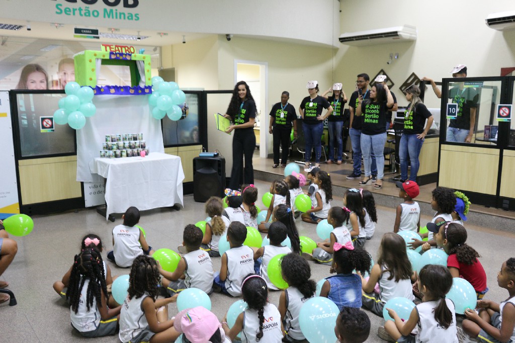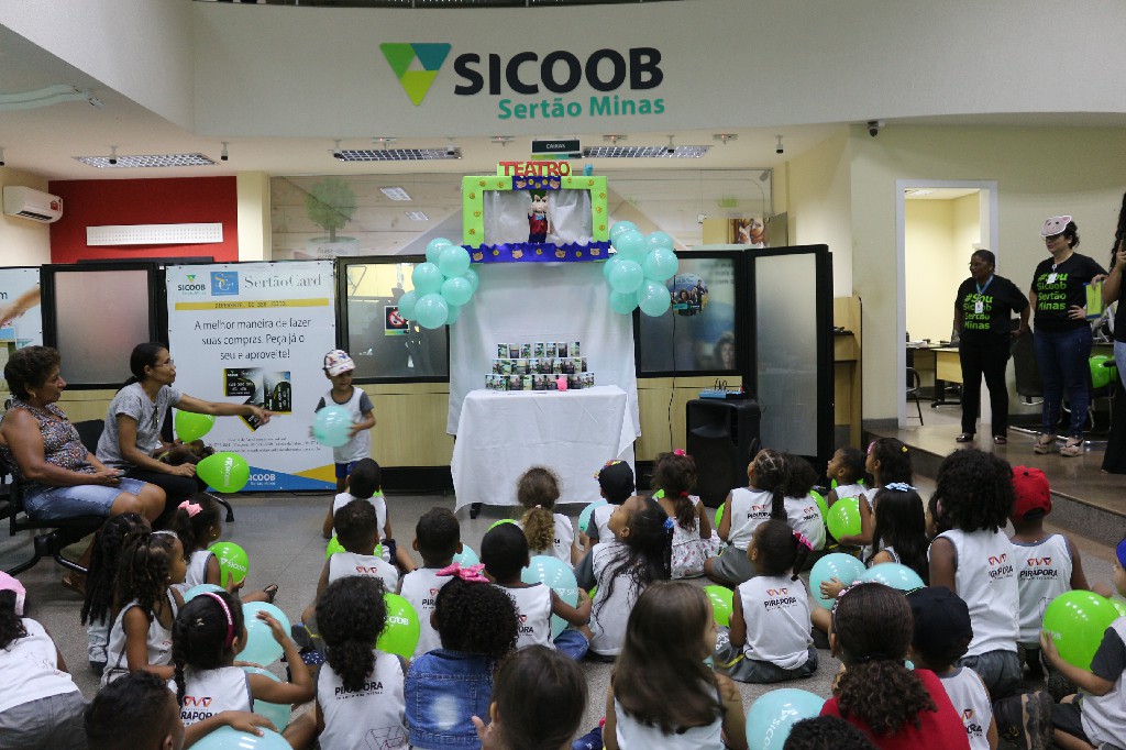 A escola municipal Rui Barbosa, na última sexta-feira, levou os alunos do primeiro período para assistir a uma apresentação de teatro feita no banco Sicoob sobre educação financeira. Projeto realizado em parceira com a Secretaria Municipal de Educação de Pirapora.