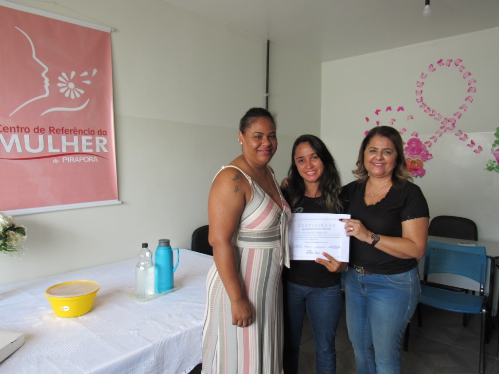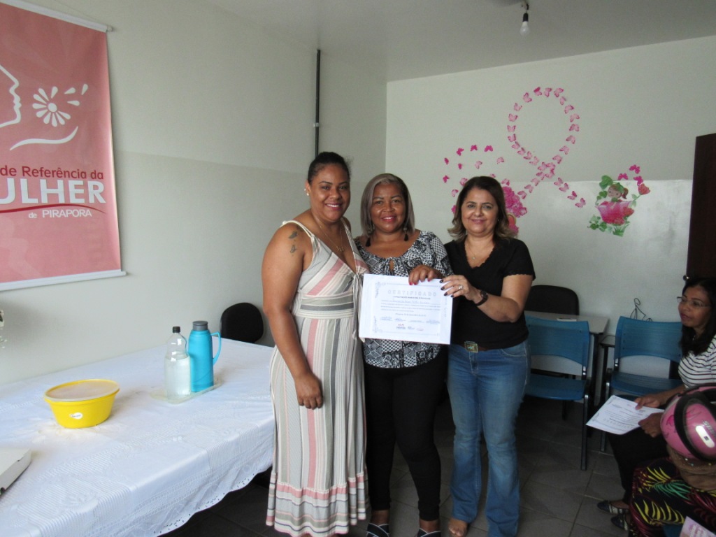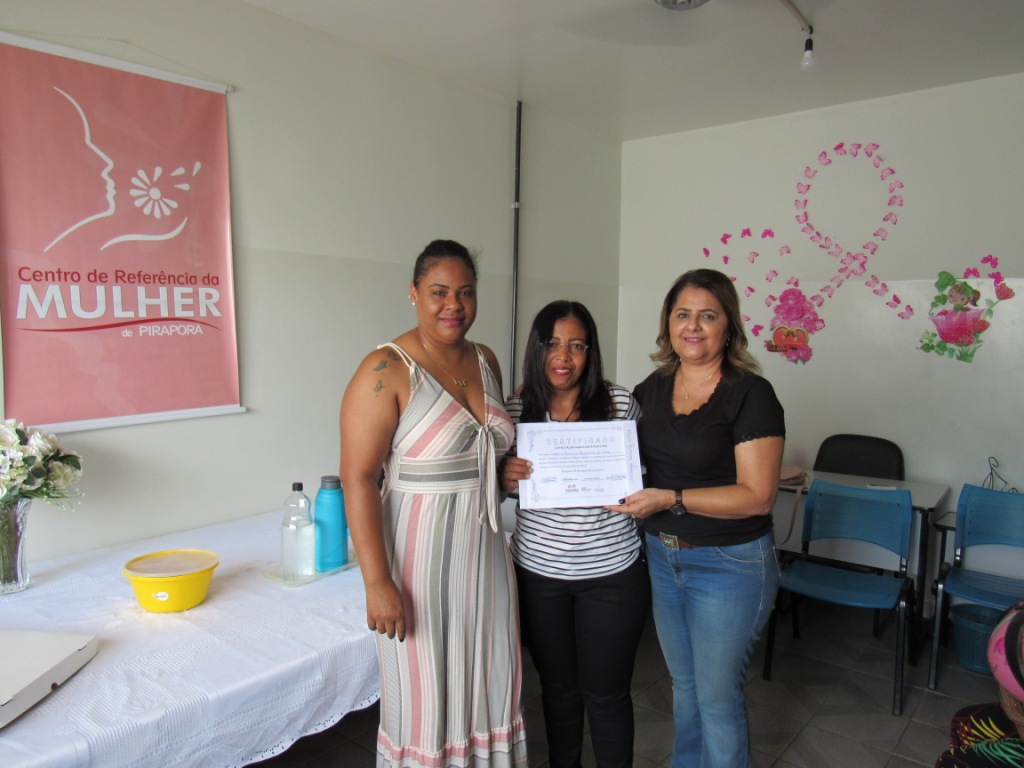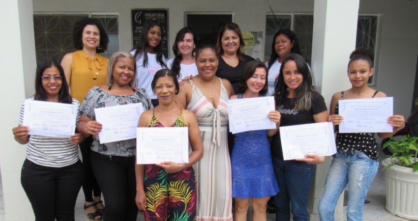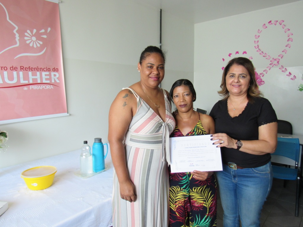 A prefeitura de Pirapora certificou mais uma turma de alunas dos cursos profissionalizantes realizados pelo Centro de Referência da Mulher (CREMP). O encerramento do curso contou com a presença das alunas, a presidente do Conselho Municipal dos Direitos da Mulher, Kenia Maria Barros; a técnica de referência do CREMP, Cristiane Ramos; as técnicas do CREMP Rozany Cota e Edna Soares; a professora Daiane Rezende de Souza.