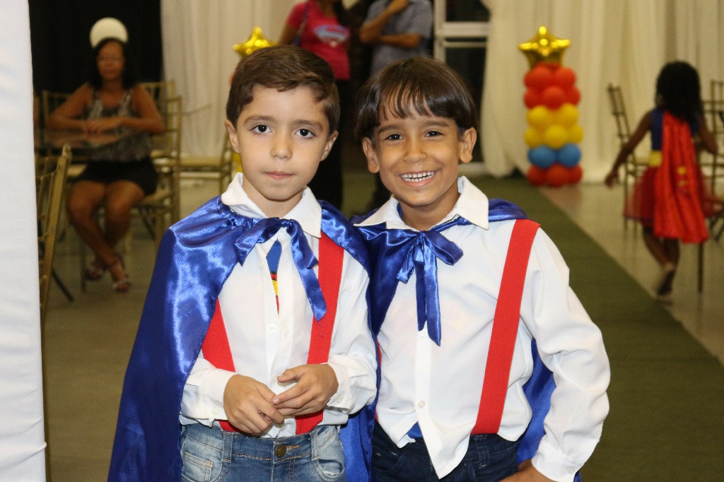 Os alunos do segundo período da escola vestiram as suas capas e se transformaram em Superman e Supergirl prometendo sempre fazer o bem as pessoas, animais e acima de tudo cuidar do planeta.