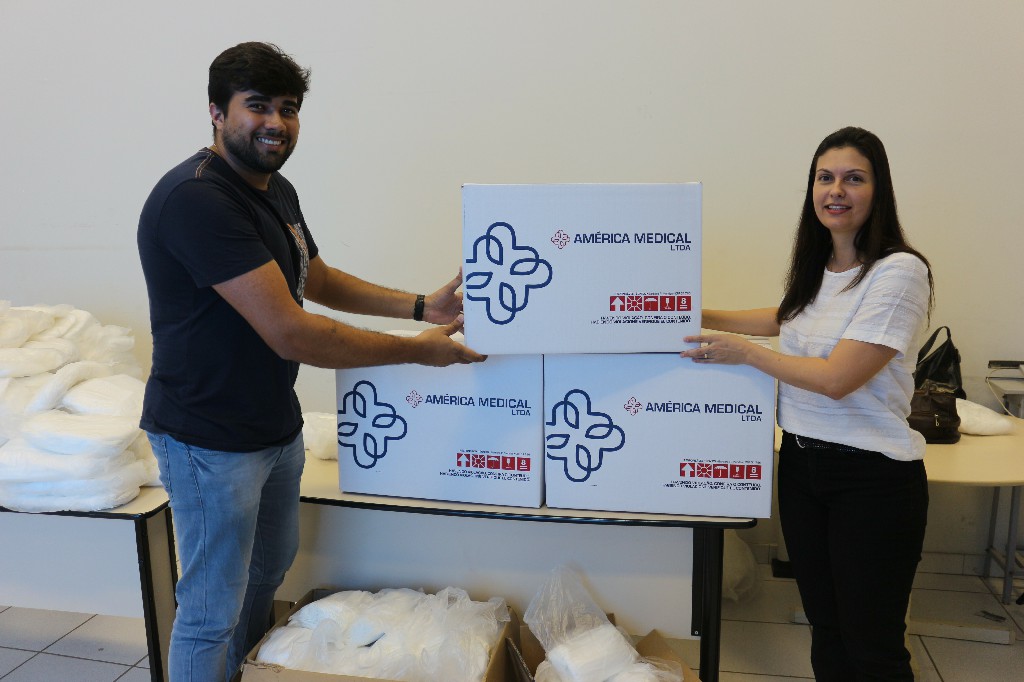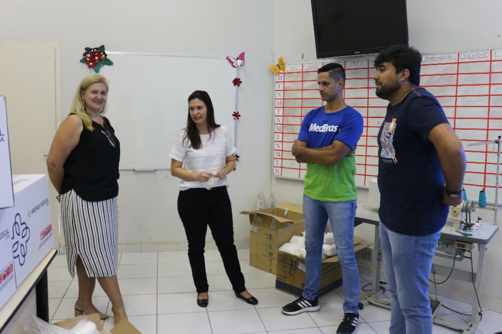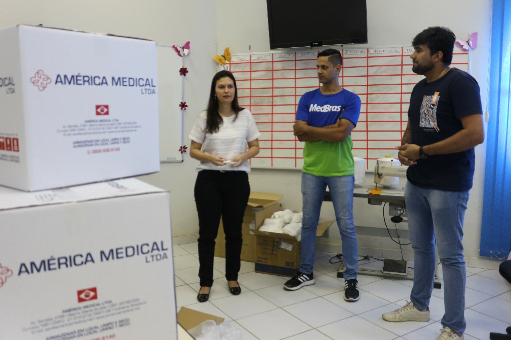 A prefeita de Pirapora, Marcella Fonseca recebeu na tarde de ontem (30), doação de vários insumos para o combate ao CONVID-19, coronavírus. A American (antiga MedBras) doou compressas de gaze, propé (protetor para os pés), touca descartável e jaleco para o Hospital de Campanha que está sendo montado no município.