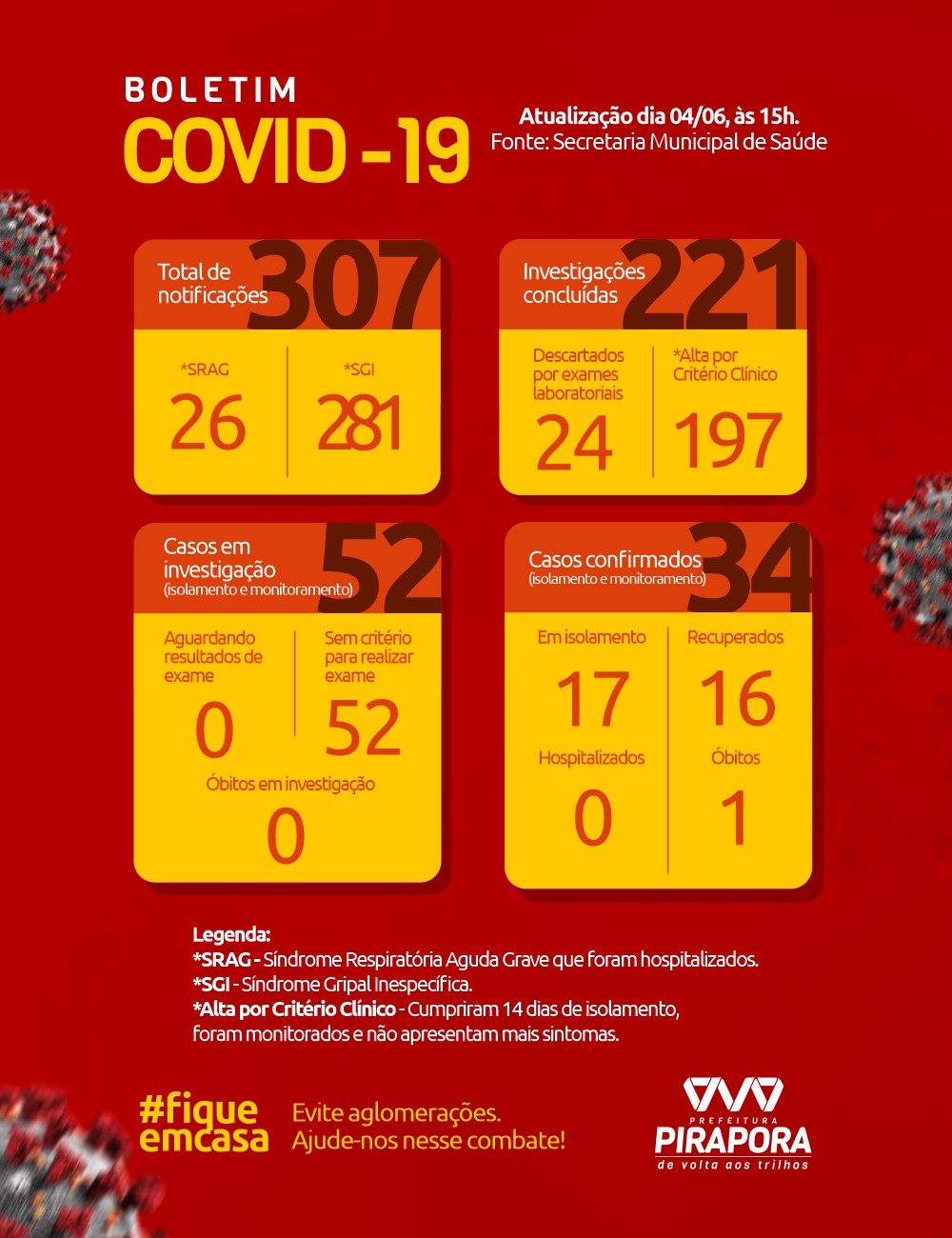 A atualização foi até as 16h de hoje, 04/06.