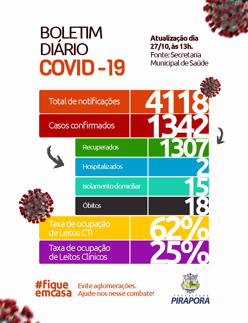 Lembrando que Pirapora é cidade polo microrregional e responsável pelo atendimento hospitalar de mais seis municípios. A taxa hospitalar sofre variação diariamente.