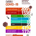 O boletim completo atualiza em 4.991 casos notificados, 1.598 casos confirmados, com 19 em isolamento e monitoramento, 1.559 recuperados e 20 óbitos. Não há paciente confirmado para covid-19 hospitalizado de Pirapora.