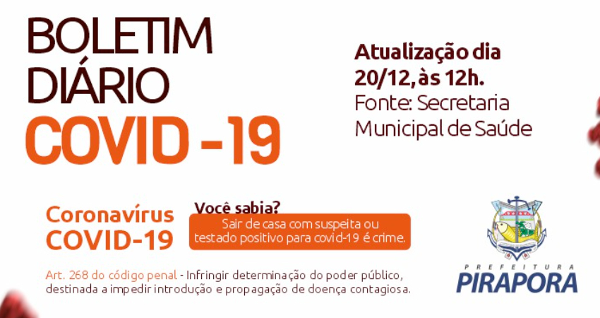 O Comitê Técnico de Enfrentamento da Covid-19 de Pirapora divulga o boletim deste domingo (20/12), sem caso confirmado para a covid-19.