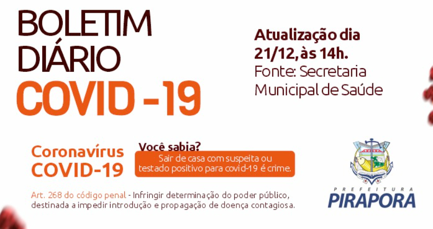 O Comitê Técnico de Enfrentamento da Covid-19 de Pirapora divulga o boletim desta segunda-feira (21/12), com 02 mulheres, 22 e 42 anos, que testaram positivo para a covid-19.