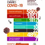 O boletim completo atualiza em 5.865 casos notificados, 1.851 casos confirmados, com 10 em isolamento e monitoramento, 1.817 recuperados, 02 hospitalizado e 22 óbitos.