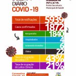 O boletim completo atualiza em 5.939 casos notificados, 1.872 casos confirmados, com 06 em isolamento e monitoramento, 1.840 recuperados, 04 hospitalizados e 22 óbitos.