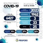 O boletim completo atualiza em 6.427 casos notificados, 2.023 casos confirmados, com 33 em isolamento e monitoramento, 1.962 recuperados, 03 hospitalizados e 25 óbitos.