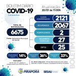 O boletim completo atualiza em 6.675 casos notificados, 2.121 casos confirmados, com 27 em isolamento e monitoramento, 2.067 recuperados, 02 hospitalizados e 25 óbitos. Todos os pacientes em isolamento estão sendo monitorados pelas equipes de saúde do municipio.