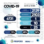 O boletim completo atualiza em 6.731 casos notificados, 2.139 casos confirmados, com 10 em isolamento e monitoramento, 2.103 recuperados, 01 hospitalizados e 25 óbitos.