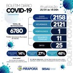 O boletim completo atualiza em 6.780 casos notificados, 2.158 casos confirmados, com 11 em isolamento e monitoramento, 2.121 recuperados, 01 hospitalizado e 25 óbitos.