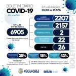 O boletim completo atualiza em 6.905 casos notificados, 2.207 casos confirmados, com 22 em isolamento e monitoramento, 2.157 recuperados, 02 hospitalizados e 26 óbitos.