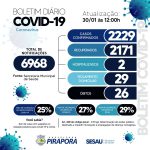 O boletim completo atualiza em 6.968 casos notificados, 2.229 casos confirmados, com 29 em isolamento e monitoramento, 2.171 recuperados, 02 hospitalizados e 26 óbitos.