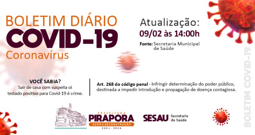 O Comitê Técnico de Enfrentamento à Covid-19 divulga o boletim desta terça-feira (09/02), com 16 casos que testaram positivo para covid-19. São 08 mulheres e 08 homens, com idade entre 01 a 69 anos.