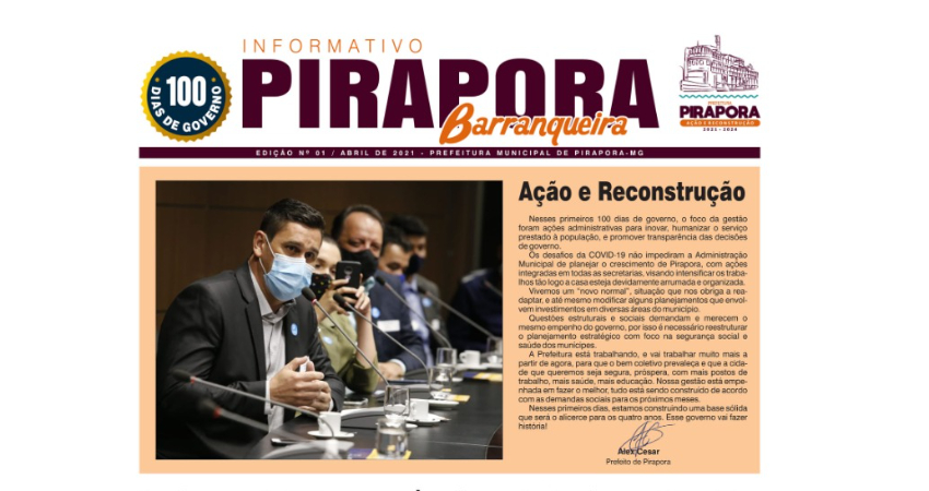Esse 'Informativo Pirapora' é uma prestação de contas desses primeiros dias de governo.