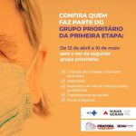 A partir do dia 12 de abril: crianças entre 6 meses e menores de 6 anos (5 anos 11 meses e 29 dias), gestantes e puérperas (mulheres no período de até 45 dias após o parto), povos indígenas e trabalhadores da saúde.