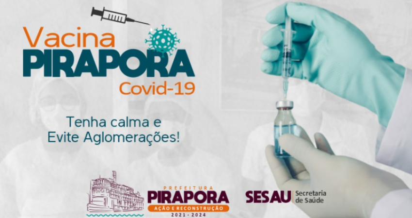 A Prefeitura de Pirapora, através da Secretaria Municipal de Saúde comunica que a 2ª dose da vacina coronavac para os idosos estará disponível na próxima semana, de 26/04 a 30/04 (segunda a sexta-feira).