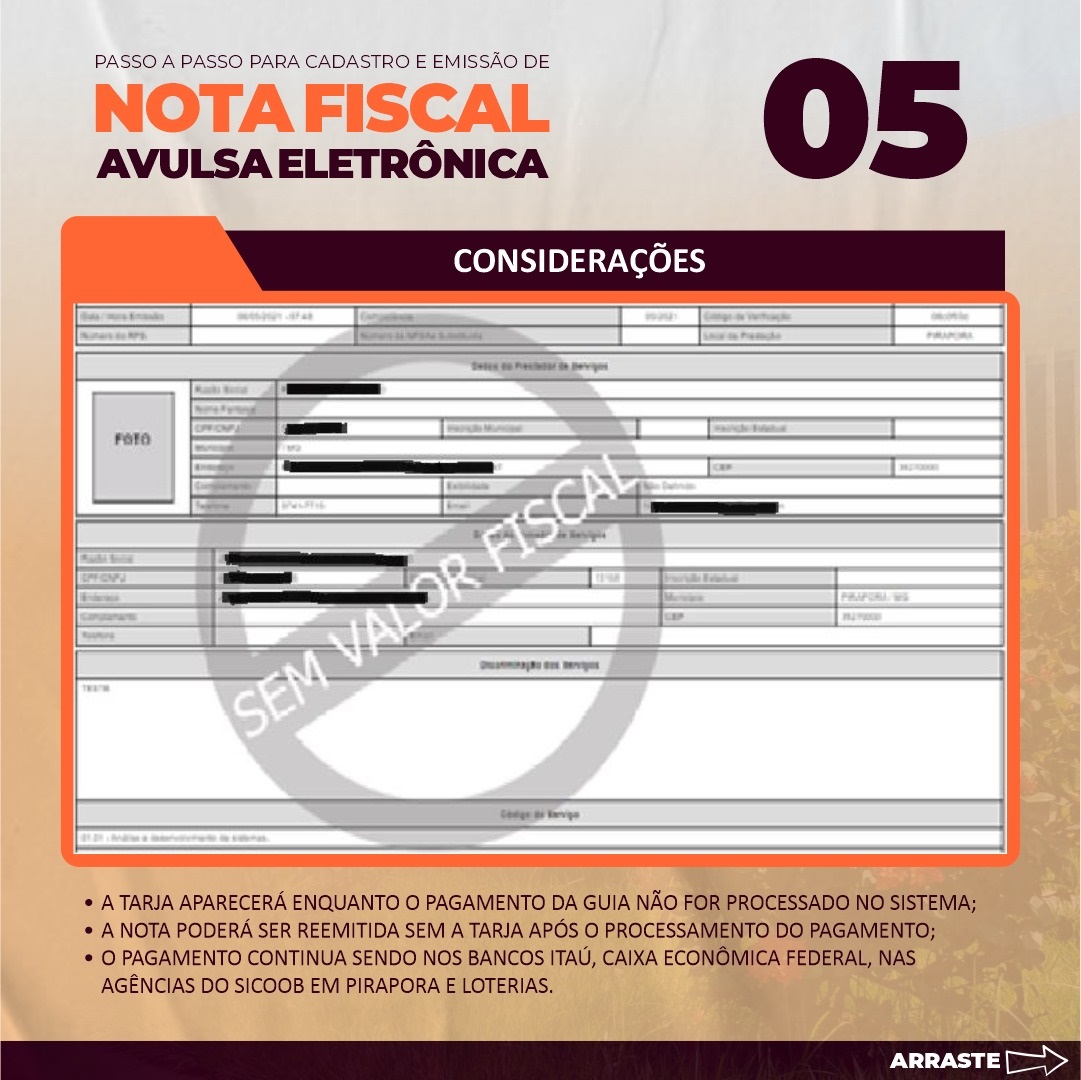 Para facilitar a vida do contribuinte a Prefeitura de Pirapora disponibilizou no site a emissão da Nota Fiscal Avulsa.