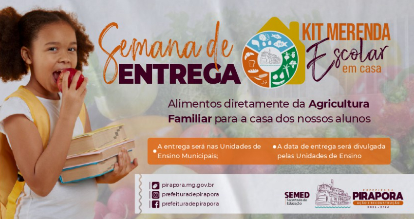 A Prefeitura de Pirapora, através da Secretaria Municipal de Educação, começa a entregar a partir desta quarta-feira, (30/06), o Kit da Merenda Escolar, com produtos oriundos da agricultura familiar. As mais de 20 unidades escolares, incluindo creches, ensino fundamental, EJA anos iniciais e APAE, farão a entrega dos kits das 8 às 16 horas, para pais e responsáveis dos mais de 5 mil alunos matriculados na rede pública municipal.