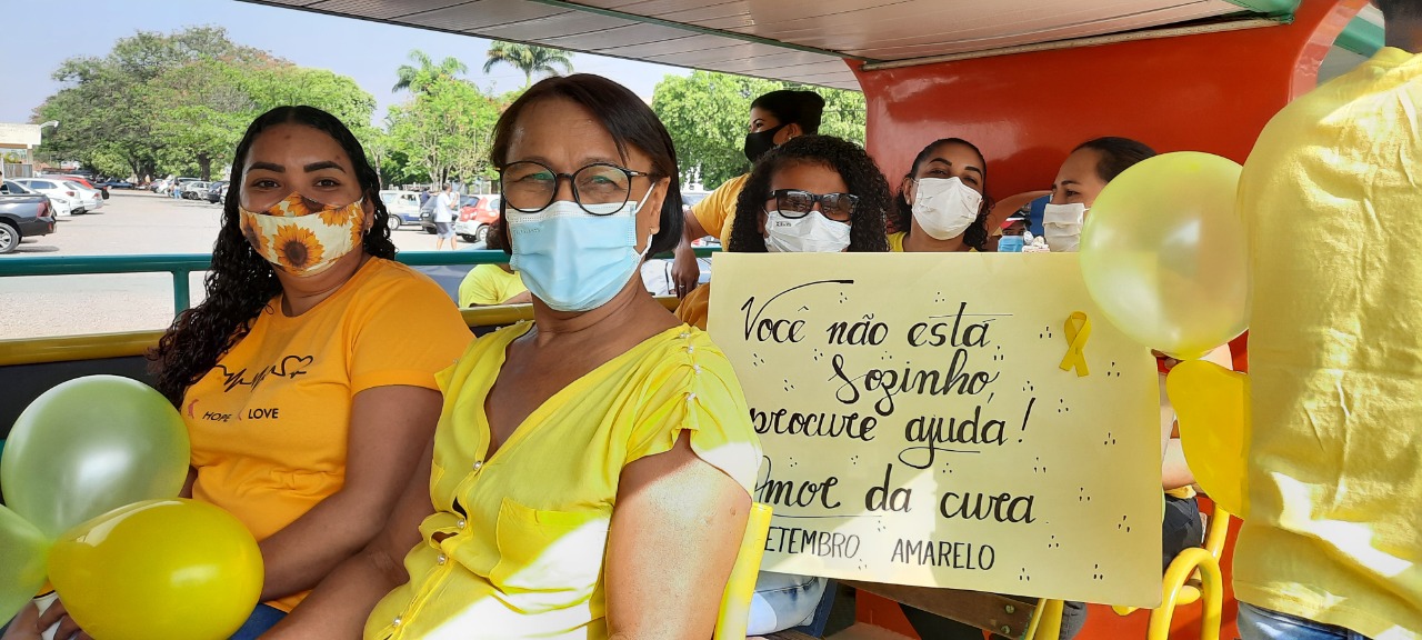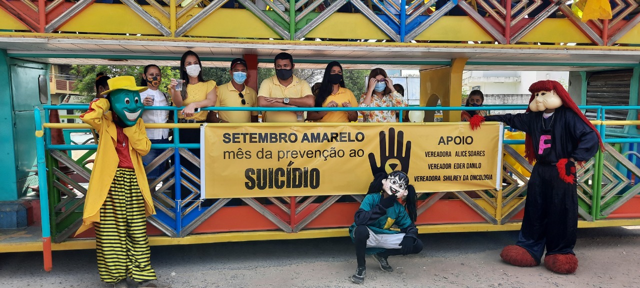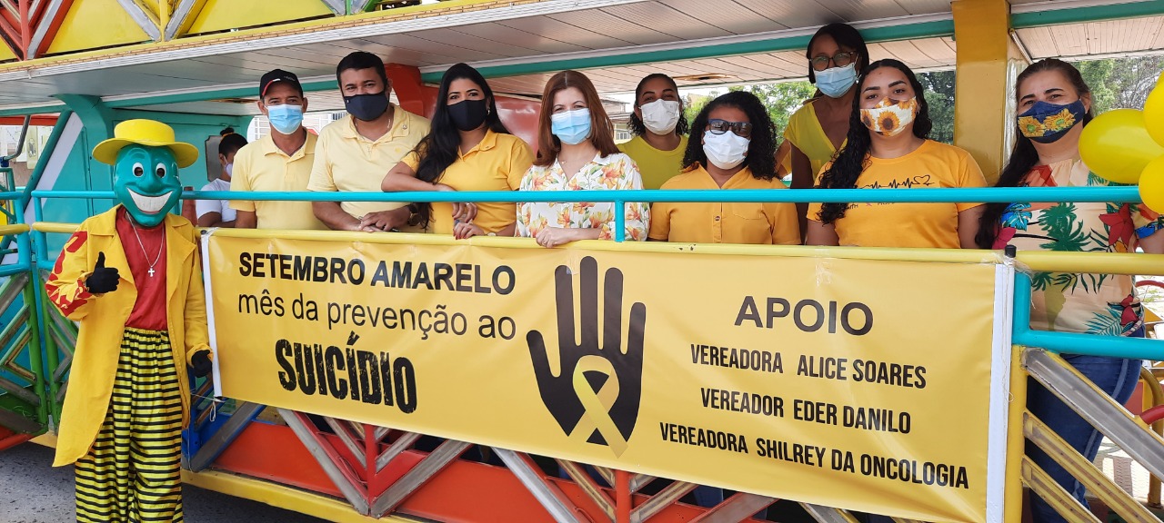 Para encerrar as atividades, as equipes da Secretaria de Saúde (SESAU) com o apoio da Secretária da Família e Políticas Sociais (SEFAM), a vice-prefeita e secretária, Anamaria Burle e os vereadores Eder Danilo, Alice Soares (Preta) e Shirley Ferreira (da Oncologia) participaram hoje, de um passeio na “Carreta da Alegria”, que enfeitada de amarelo passou pelas principais ruas e avenidas da cidade levando mensagens de conscientização sobre a importância de ouvir e ajudar com objetivo de lembrar a população que a luta contra o suicídio deve ser diária.
