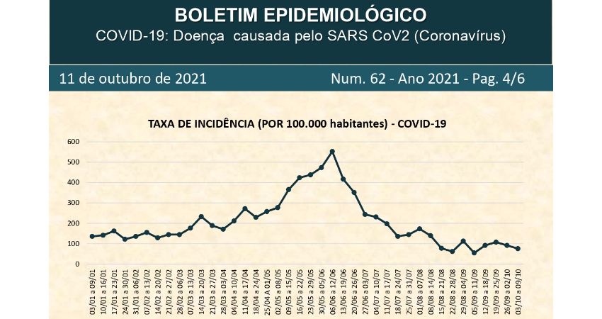 A Secretaria Municipal de Saúde atualiza o Boletim de Casos Confirmados. O 62º boletim traz novos dados epidemiológicos, o documento revela que desde a semana passada a pequena redução de casos para a Covid-19 em Pirapora continua.