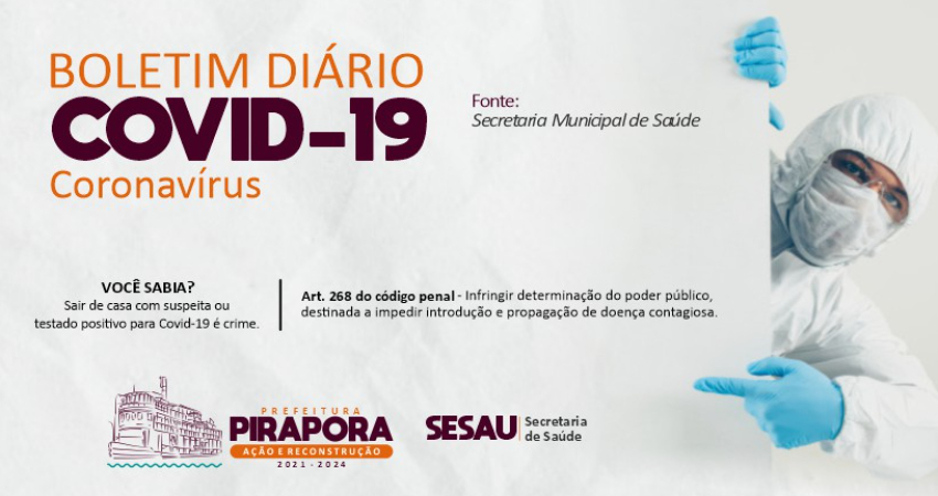O Comitê Técnico de Enfrentamento à Covid-19 atualiza o boletim deste sábado (30/10) com 01 caso confirmado para a Covid-19. Sendo 01 mulher de 85 anos.