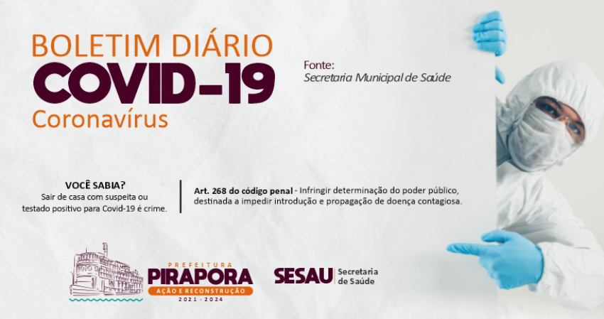 O Comitê Técnico de Enfrentamento à Covid-19 atualiza o boletim desta terça – feira (02/11) com 01 caso confirmado para a Covid-19. Sendo 01 homem com 85 anos.