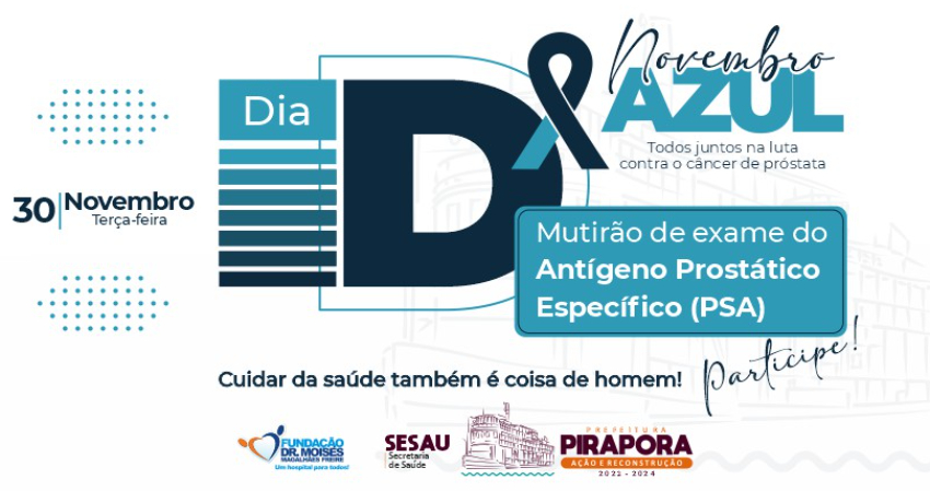 A Prefeitura de Pirapora, por meio da Secretaria de Saúde – SESAU, em parceria com o CEAE e Fundação Hospitalar Dr. Moises Magalhaes Freire, realizam hoje, 30/11, um mutirão de exame do Antígeno Prostático Específico (PSA).