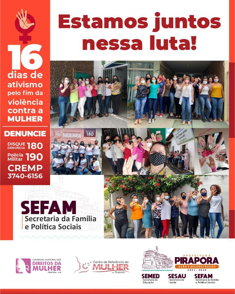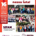 Promovida pela Secretaria Municipal da Família e Políticas Sociais (SEFAM), por meio do Centro de Referência da Mulher (CREMP) e em parceria com o Conselho Municipal dos Direitos da Mulher, a campanha seguirá até o dia 10 de dezembro, com mais ações em prol do engajamento de toda a sociedade por esta causa.