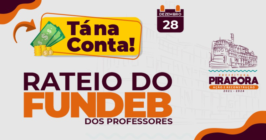 A Prefeitura de Pirapora realizou hoje, 28/12, os pagamentos do rateio do Fundo de Manutenção e Desenvolvimento da Educação Básica (Fundeb), e o 14º salário dos Agentes de Endemias e de Saúde, junto com o pagamento do salário do servidor público.