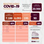 O Comitê Técnico de Enfrentamento à Covid-19 atualiza o boletim desta quarta -feira (12/01), com 31 casos  confirmados para Covid – 19. Sendo 12 homens e 19 mulheres. Com idades entre 21 e 88 anos.