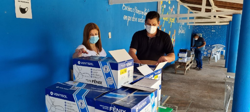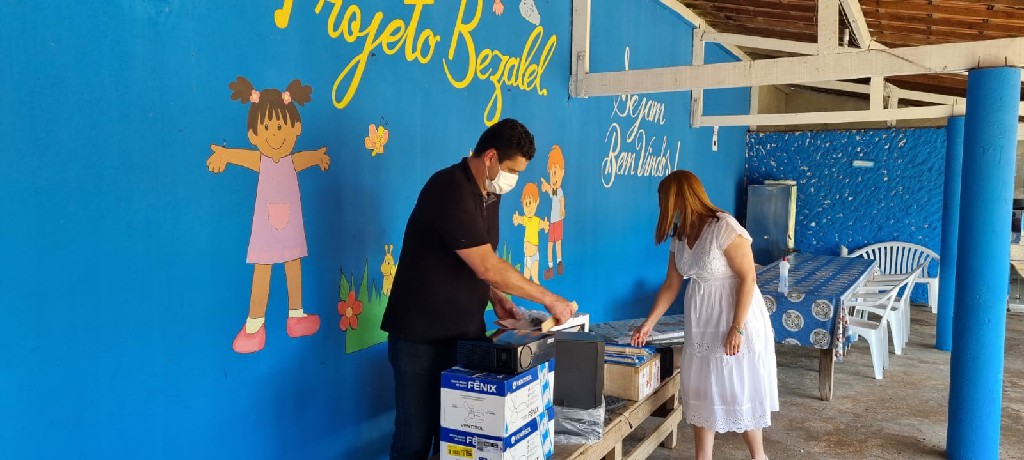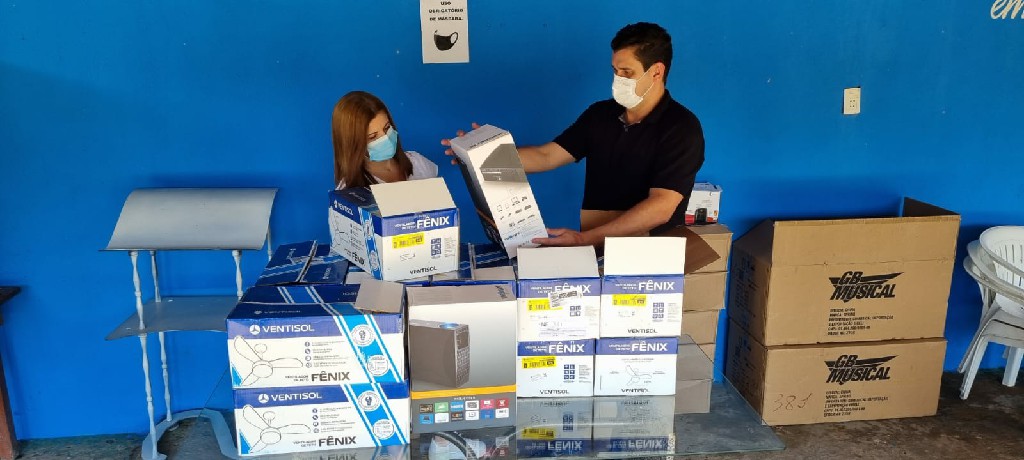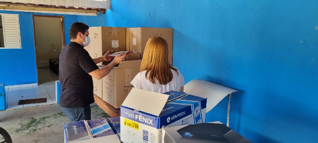 O prefeito Alex César e a vice-prefeita e secretária da SEFAM, Anamaria Burle, participaram da nova entrega para a associação. Desta vez, foram repassados 15 ventiladores de teto, 37 flautas, sete teclados, 20 computadores, três projetores de led e cinco armários de aço. Conforme o termo de compromisso firmado com a Prefeitura de Pirapora, a entidade beneficiada se torna a responsável pela utilização, guarda e manutenção dos equipamentos, no desenvolvimento de programas e projetos sociais, voltados para o município.
