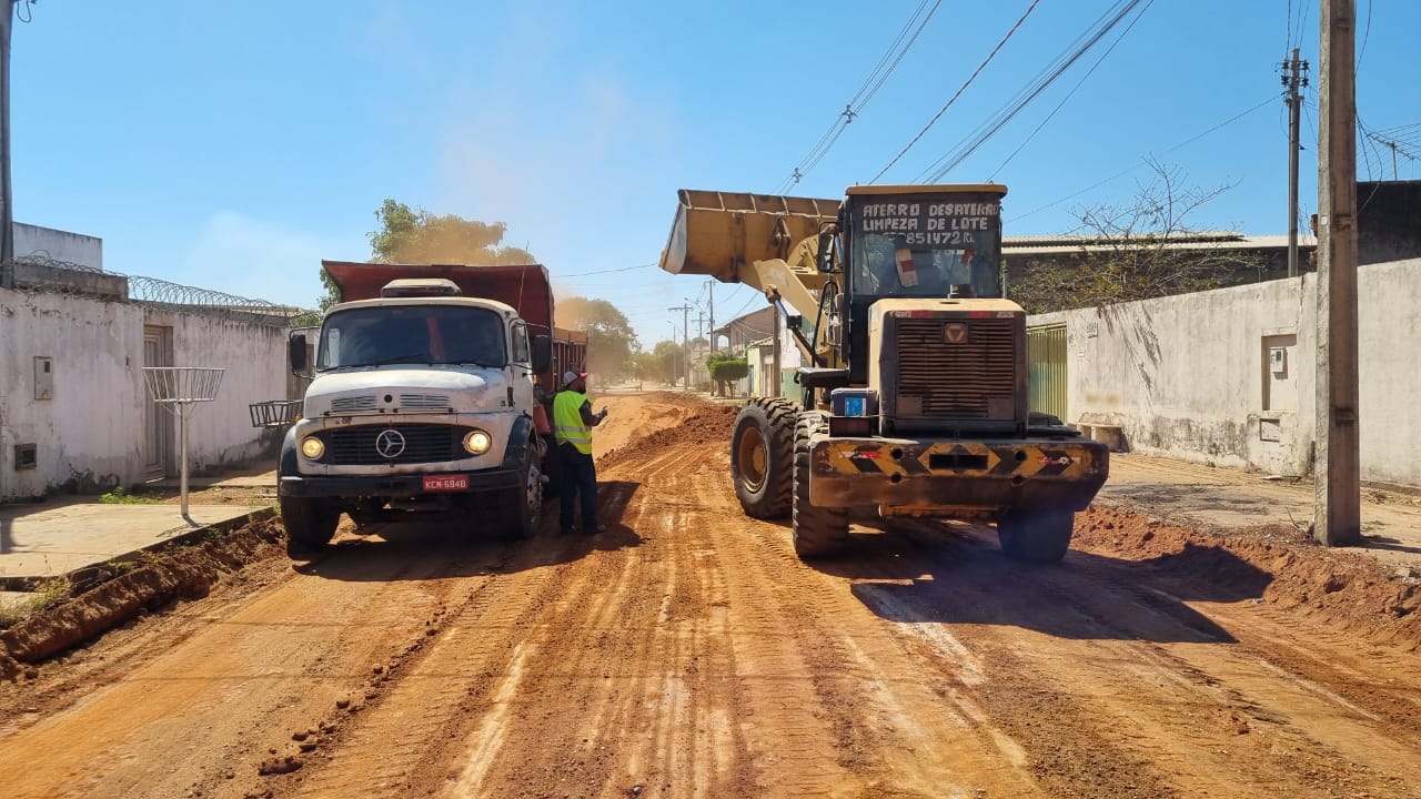 Após assinatura da Ordem de Serviço para a pavimentação asfáltica de várias ruas do bairro Nova Pirapora, feita pelo prefeito de Pirapora, Alex Cesar, os colaboradores com as máquinas já começaram a moldar as novas vias.