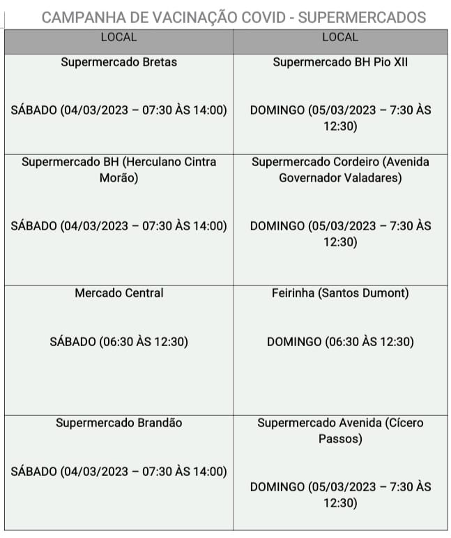 A Secretaria de Saúde realizou diversas campanhas de vacinação nos supermercados com maior fluxo de pessoas nos fins de semana (sábado e domingo), com intuito de aumentar as coberturas vacinais contra o COVID.