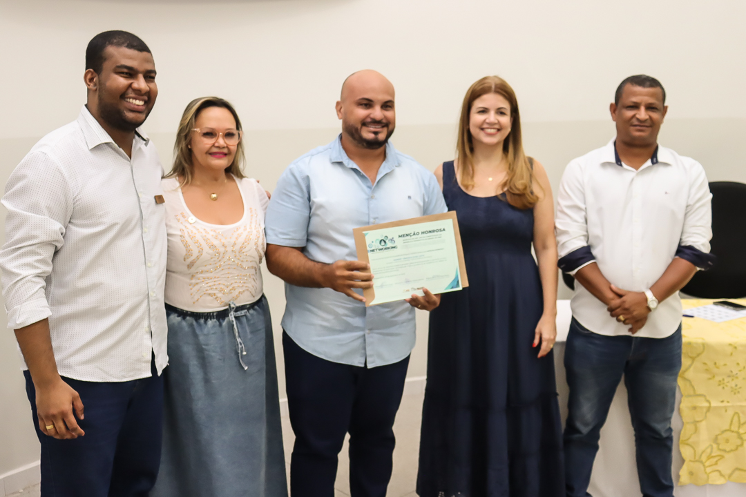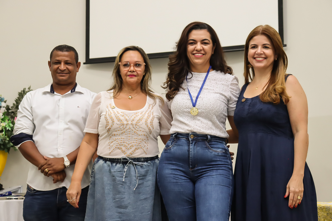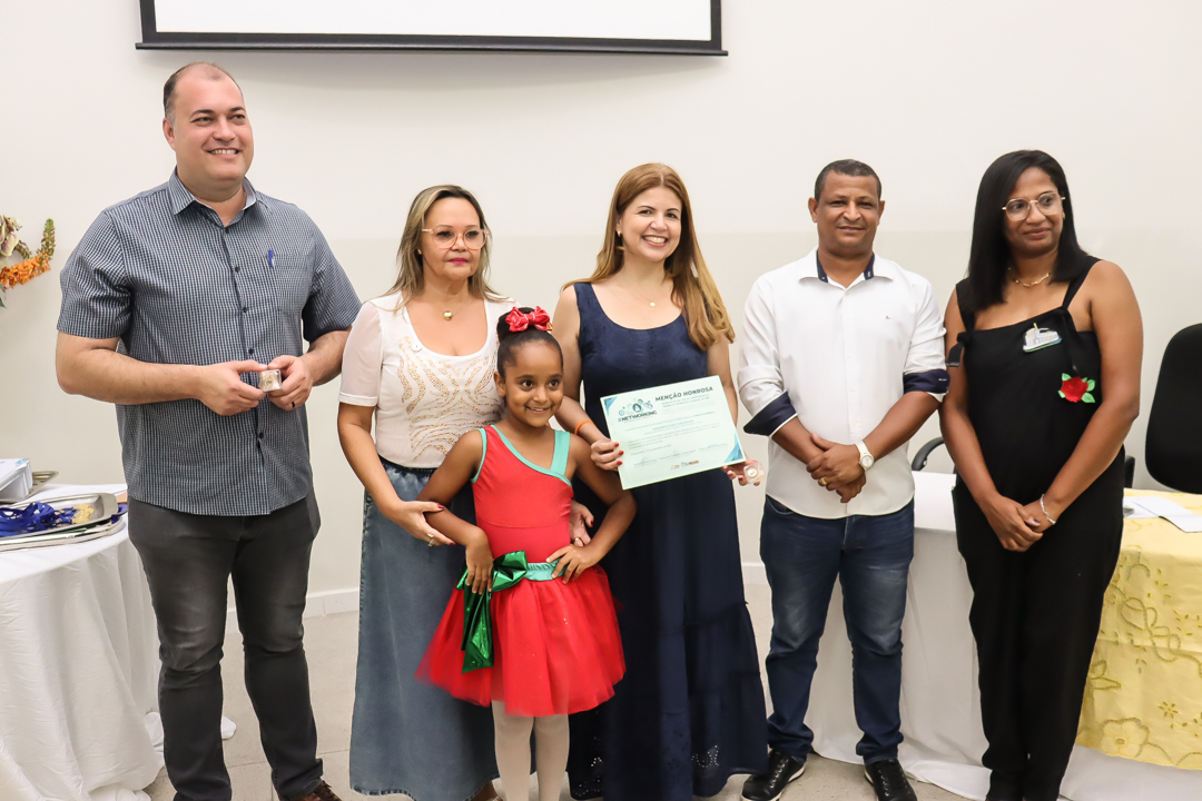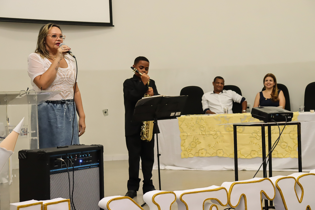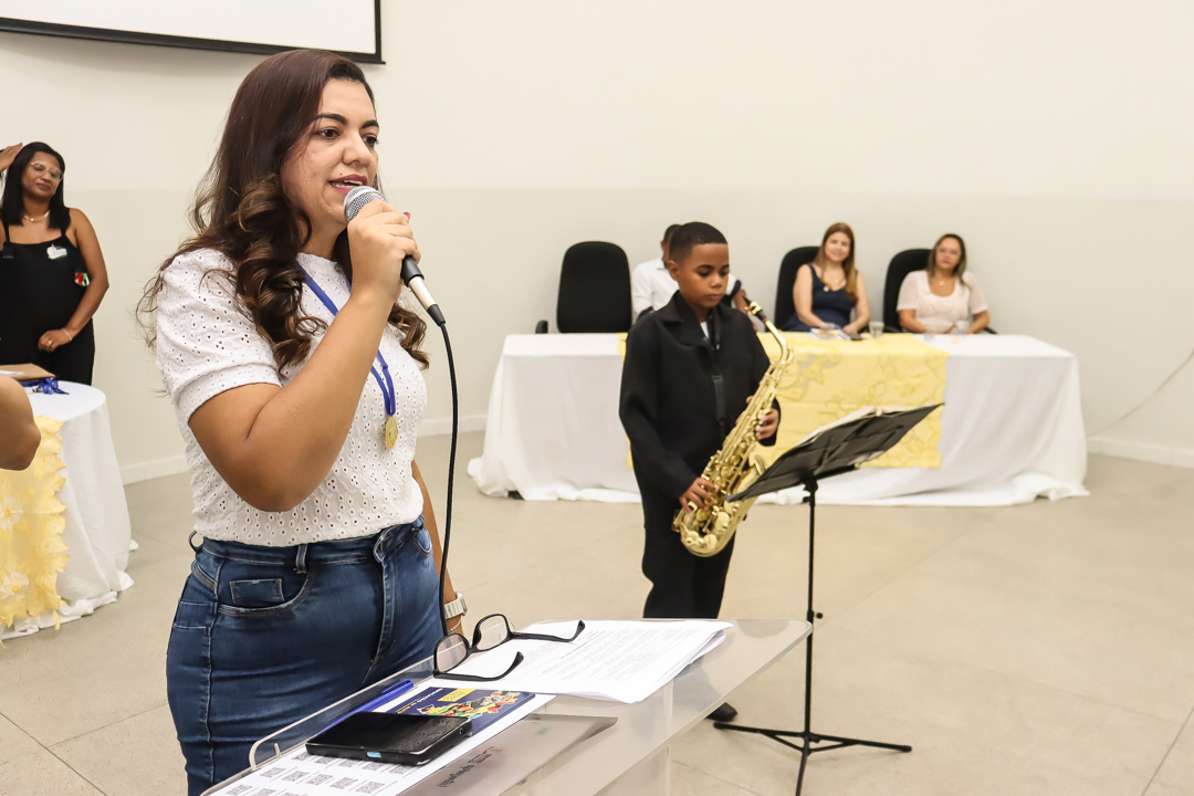 Representando o prefeito Alex César, a vice-prefeita Anamaria Burle esteve presente e compôs a mesa de honra com a secretária de Educação Jacqueline Guimarães e o presidente da Câmara, vereador Maurisim. Ainda marcaram presença os secretários de Governo e de Desenvolvimento, Paulo Rogério e Hélio Júnior e os vereadores Antônio Marcelo, Eder Danilo e Tom. Na plateia, além de servidores municipais e alunos, também estavam os representantes de órgãos e entidades que foram homenageadas por toda a contribuição e parceria com a SEMED, durante o ano de 2023.