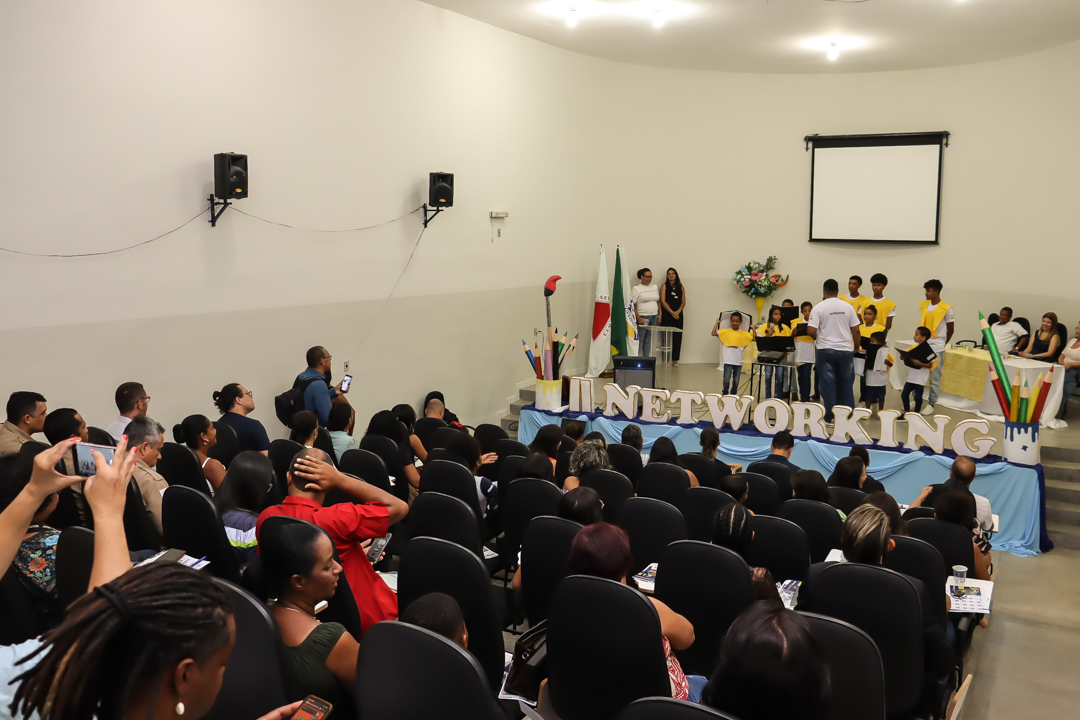 O auditório do Centro de Educação Permanente em Saúde (CEPS) esteve lotado, no final da tarde desta quinta-feira (07/12), durante a realização do 2º Networking, promovido pela Secretaria Municipal de Educação (SEMED), através da equipe de Diretoria de Projetos e Inovação. A iniciativa, que foi criada para valorizar e fortalecer toda rede integrada de parceiros e apoiadores dos projetos que são mediados pela SEMED, também se torna a cada edição, uma grande oportunidade para que toda a comunidade conheça a evolução e conquistas da Educação Pública Municipal.
