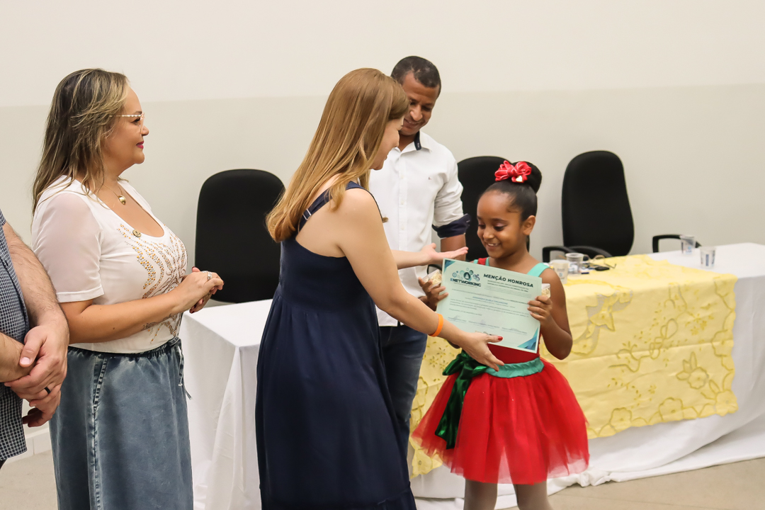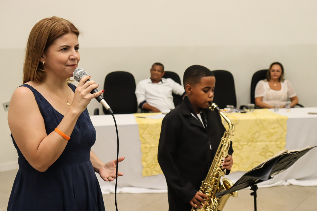 Entre apresentações culturais, discursos e entregas das homenagens, os presentes puderam conhecer os resultados obtidos em 2023 e toda a trajetória de evolução da Educação Municipal nos últimos três anos, graças aos investimentos de 24 milhões de reais da Prefeitura. Na programação, foram oportunizadas as participações especiais do Coral Afro Gerais e do aluno da orquestra sinfônica e da Escola do Aparecida Matheus.