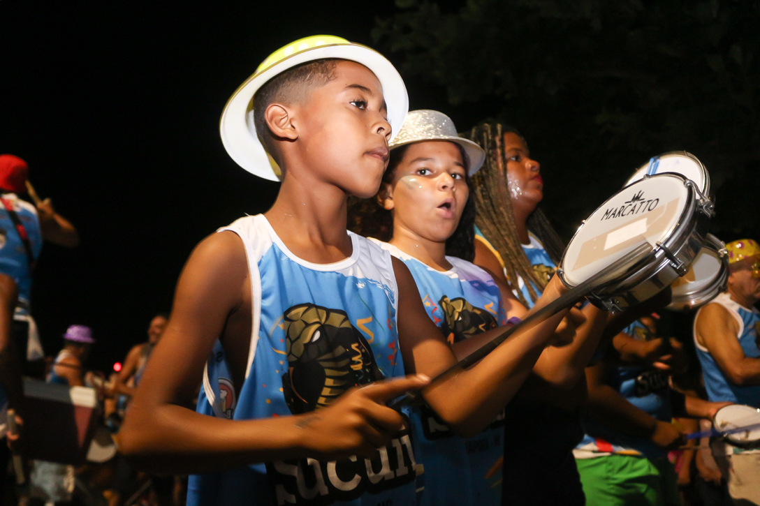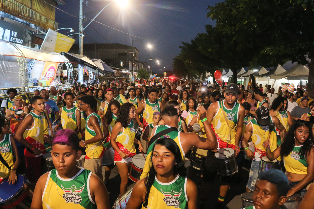 Ainda com o sol se pondo, o Bloco da Fanfarra Federal iniciou o seu desfile e encantou a todos, com a sua juventude muito bem conduzida pelo seu regente Jhoelber Batista. Na sequência foi a vez da criatividade e irreverência do Bloco Cisterninha, que além do samba enredo próprio também encenou na avenida suas origens. No fechamento dos desfiles da noite, esteve o Bloco da Sucuri, que também esbanjou animação e orgulho por representar a sua comunidade.