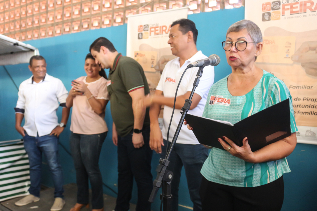 Também estava presente a secretária da SEFAM, Bilu Diniz que falou sobre a alegria de alcançar as mil famílias atendidas pelo Cartão Feira.