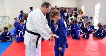 Kits de judô são distribuídos, gratuitamente, para dezenas de crianças piraporenses