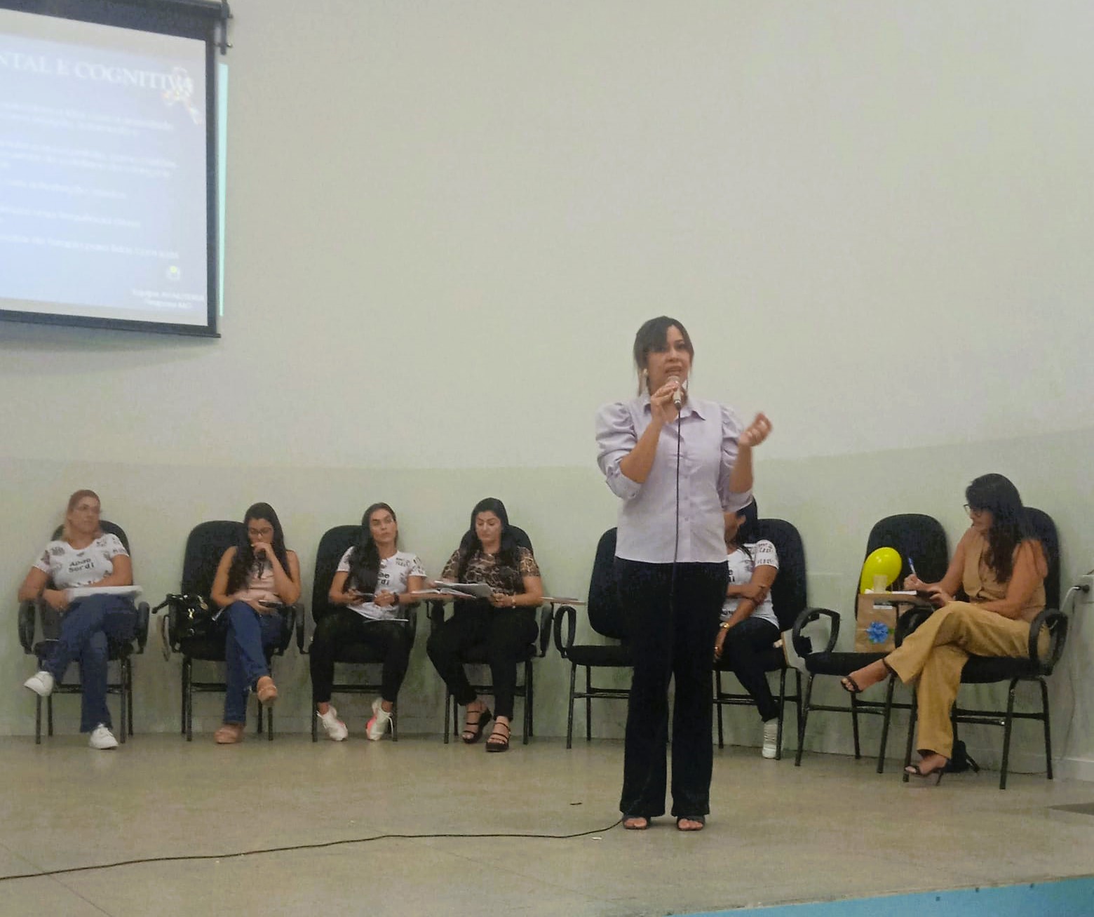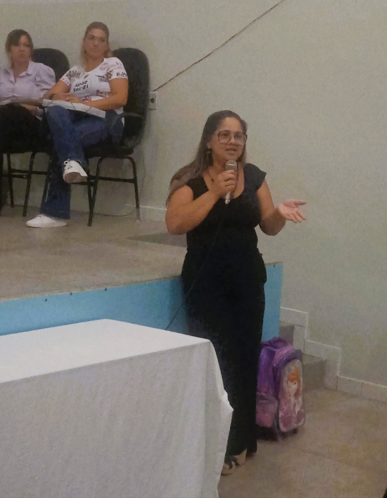 Após as palestras dos outros profissionais e a participação dos professores, a coordenadora Andréia Dias Abreu apresentou a equipe do setor de Serviço de Apoio à Inclusão da Secretaria Municipal de Educação de Pirapora. E falou em nome da SEMED, representando a secretária Jacqueline Guimarães; “é fundamental garantir uma rede de profissionais qualificados, capacitados e aptos para atender as crianças com Transtorno do Espectro do Autismo (TEA). A SEMED tem esse compromisso de promover a educação pública inclusiva, acessível e com qualidade”.