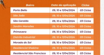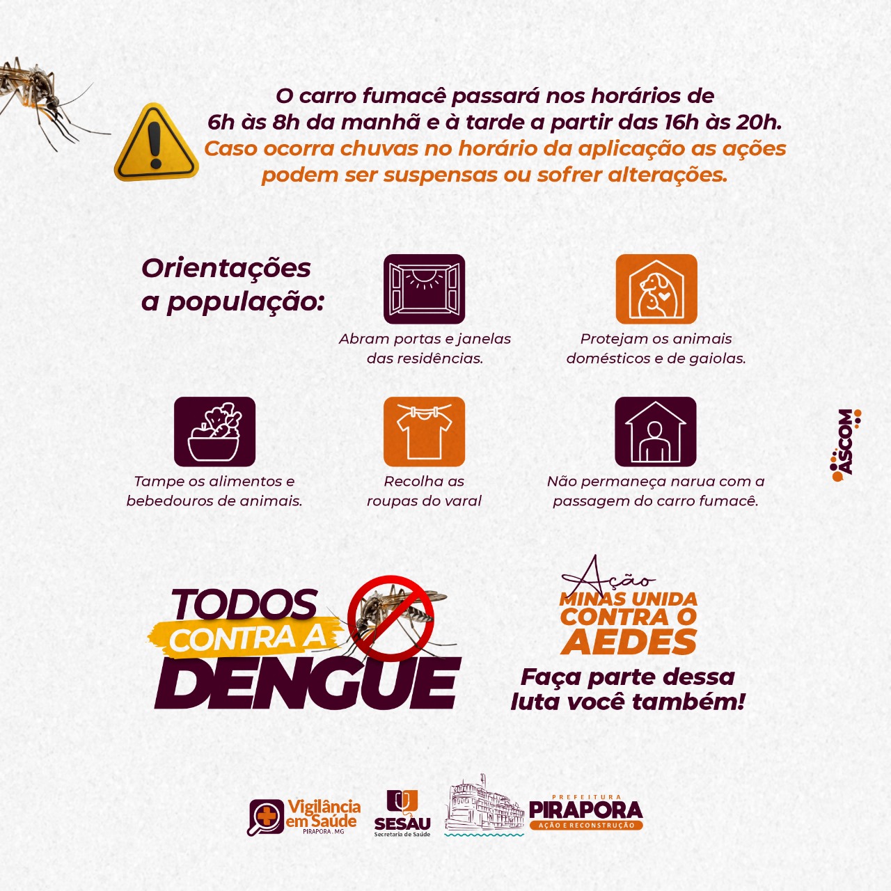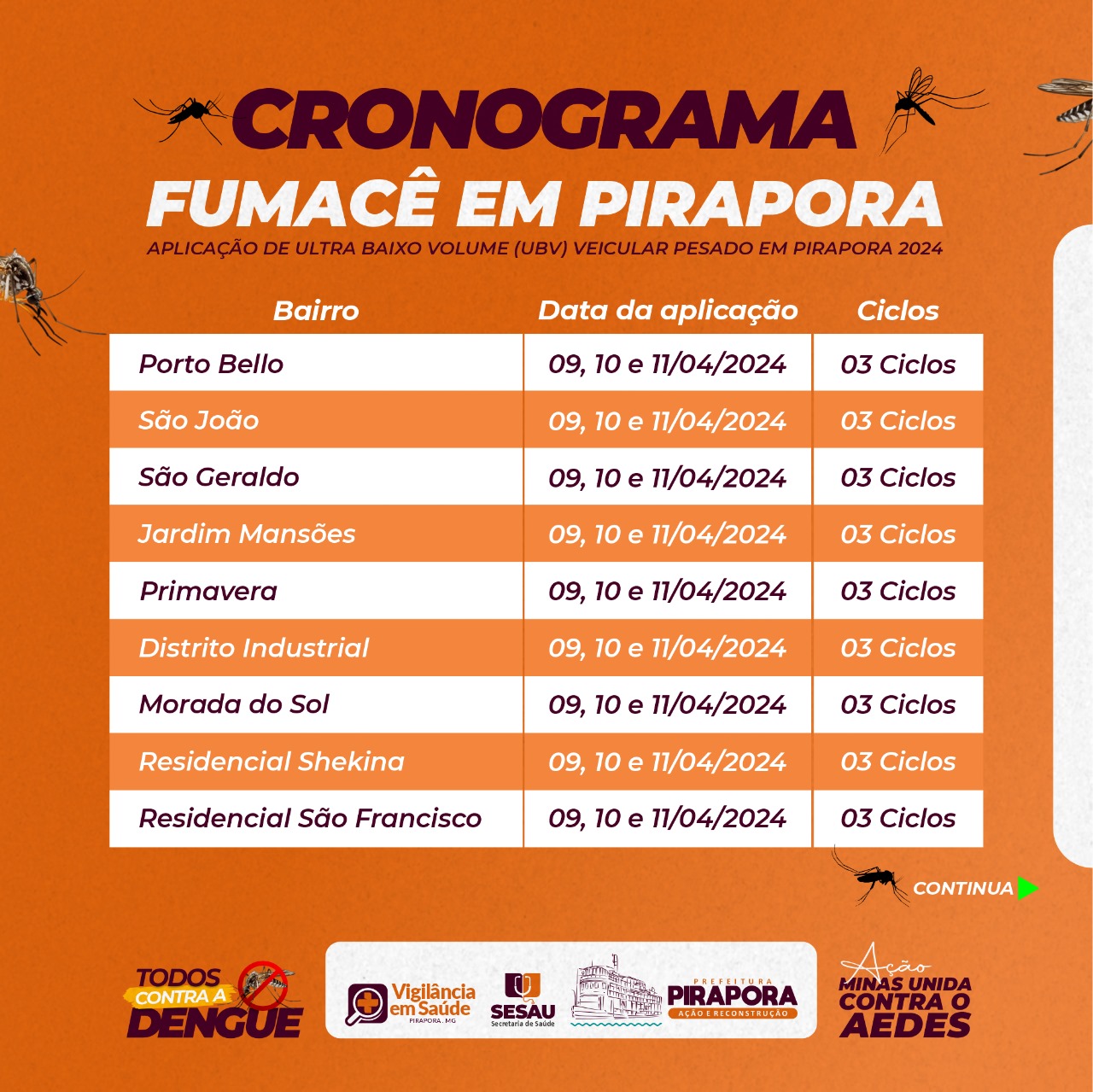 A Secretaria Municipal de Saúde informa que; o carro com o fumacê está passando pela cidade seguindo a rota programada pela Vigilância em Saúde. Confira o cronograma desta etapa.