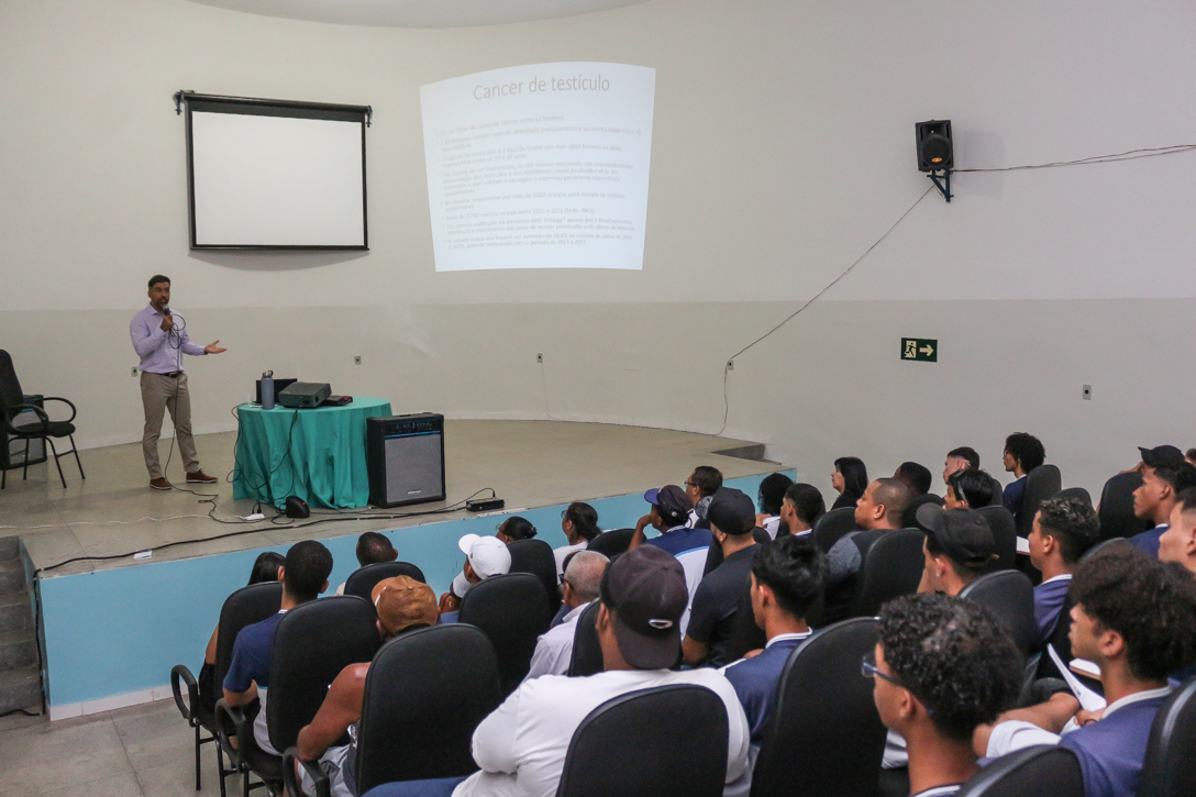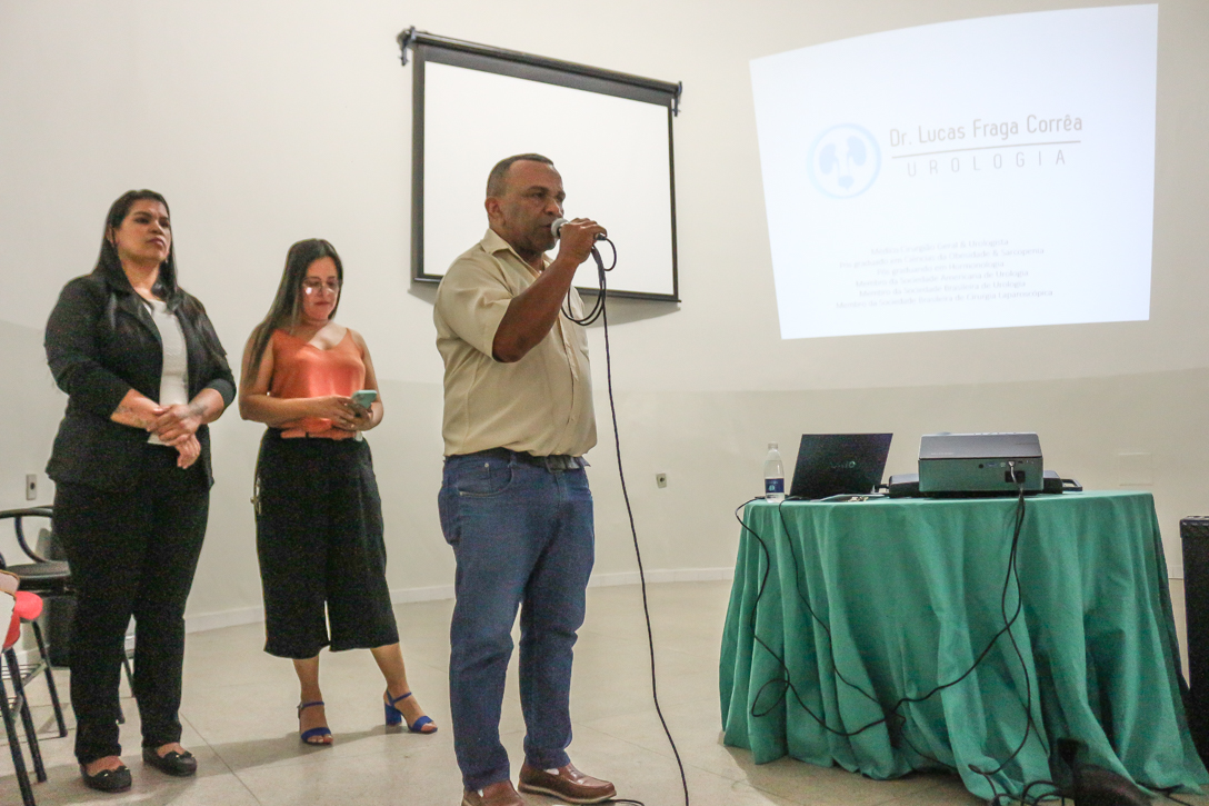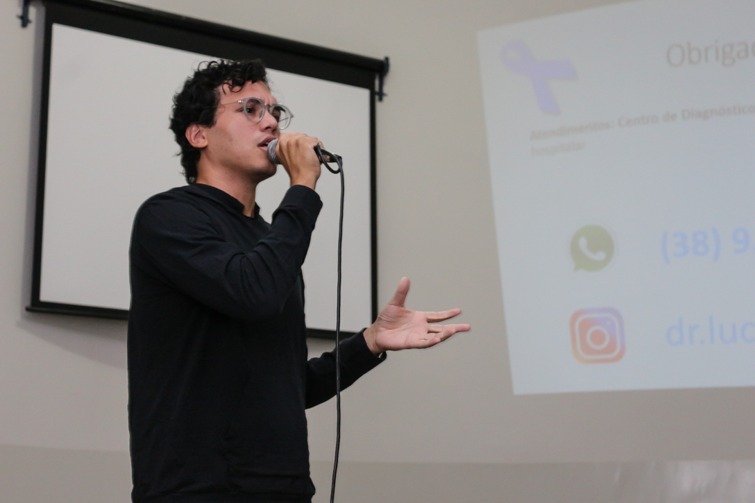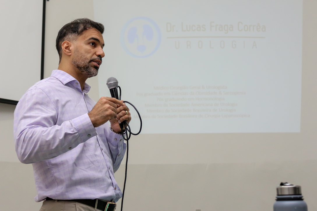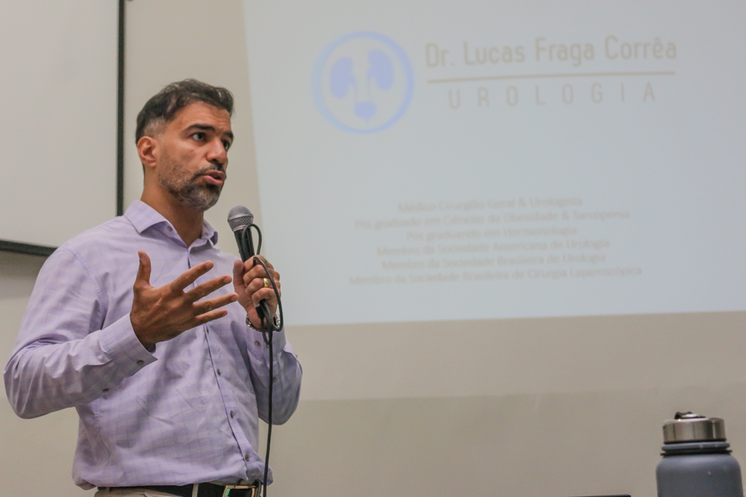 Na abertura do evento, o Dr. Lucas Fraga proferiu a palestra sobre a prevenção, os sinais e os sintomas sobre o câncer de testículo, e destacou os fatores de risco, “a maioria dos tumores de testículos surge sem causa definida, porém alguns fatores podem aumentar a probabilidade de desenvolvê-los, como no caso de homens que têm pai ou irmãos com histórico da doença, estes devem ficar atentos já que a hereditariedade é um dos fatores de risco desse tipo de câncer. Outras situações que devem ser observadas são: puberdade precoce, criptorquidia e o chamado testículo contralateral. O diagnóstico é feito pelo urologista através da história clínica e do exame físico que pode indicar uma nodulação palpável no testículo, além do exame ultrassonográfico da bolsa escrotal, e exames laboratoriais como a dosagem de marcadores tumorais”, explicou.