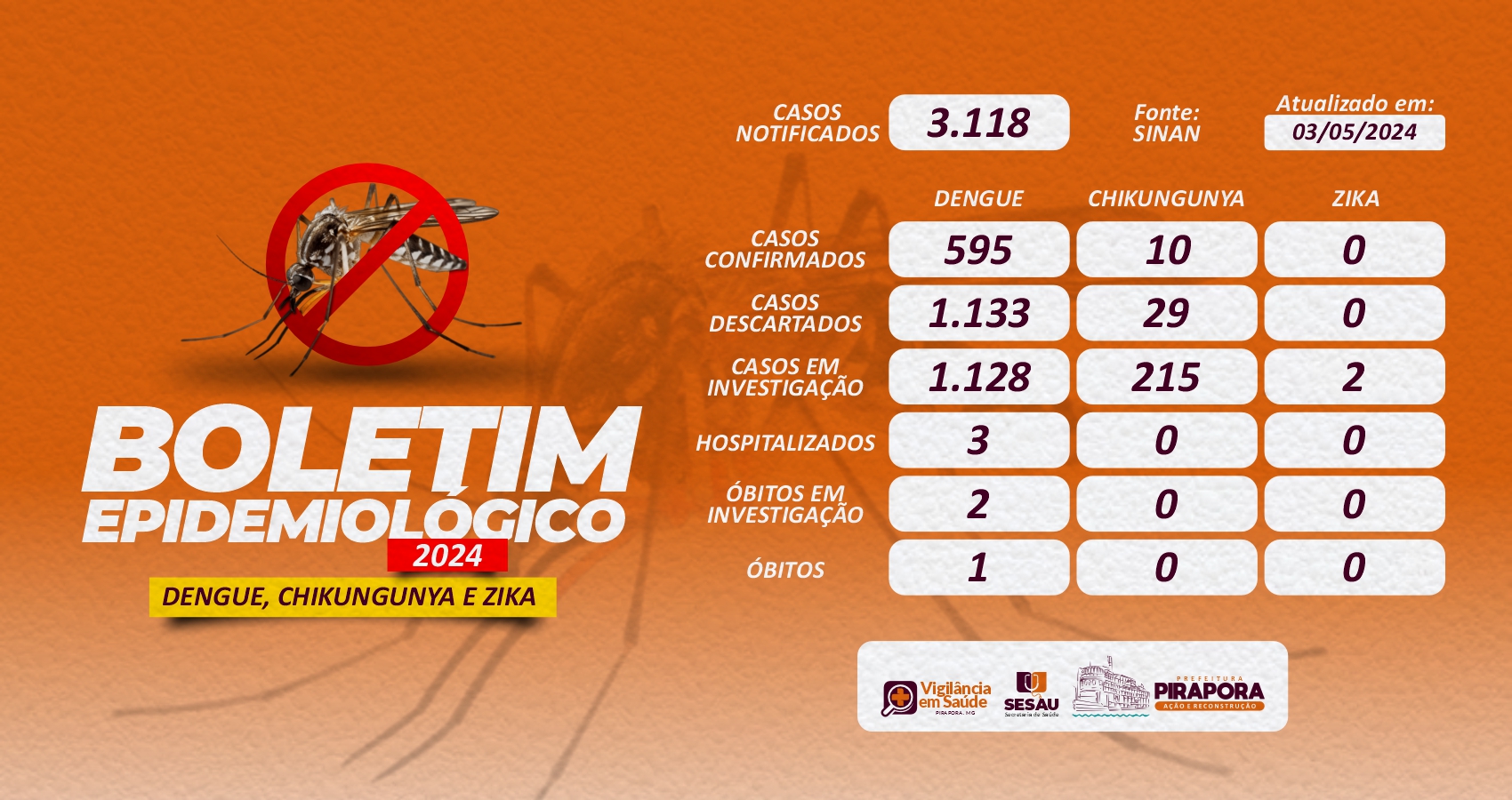 Acompanhe o Boletim Epidemiológico dos casos notificados de Dengue, Chikungunya e Zika no município.