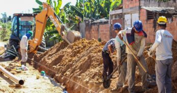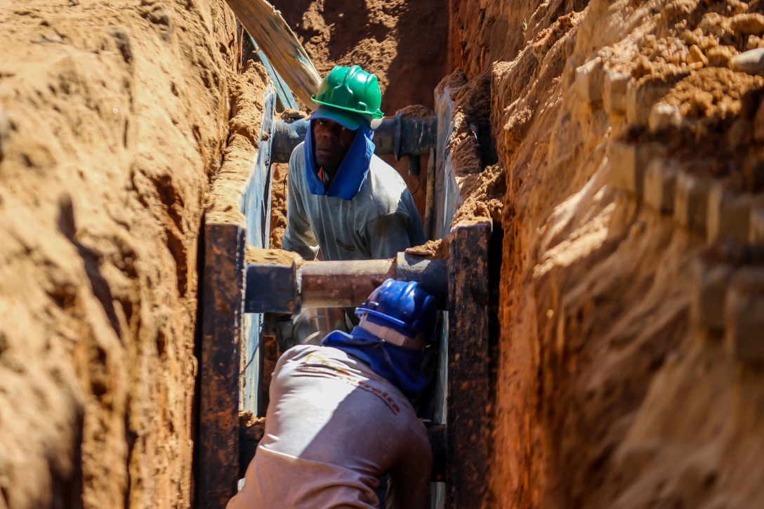 Nesse primeiro mês de execução, já foram instalados mais de 1km de rede coletora de esgoto, inclusive, os pontos de ligações domiciliares também já estão sendo colocados.