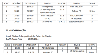 Foram 27 gols e a excelente média de mais de cinco tentos por partida. Outro destaque foi a presença de inúmeras famílias dos jovens atletas que estiveram em quadra. Na noite desta terça-feira (14), a primeira rodada terá sequência no Ginásio Poliesportivo, onde a entrada é franca.