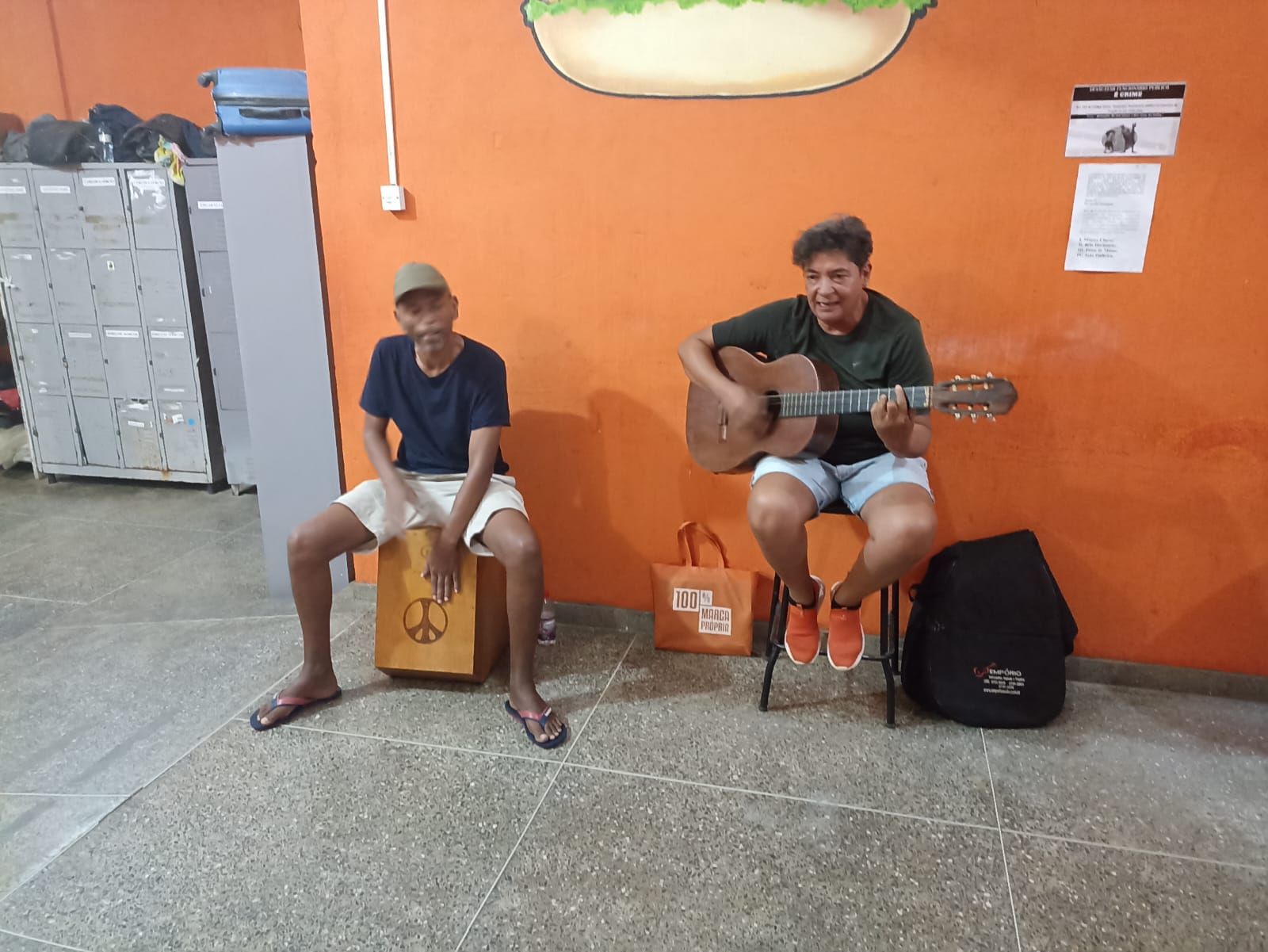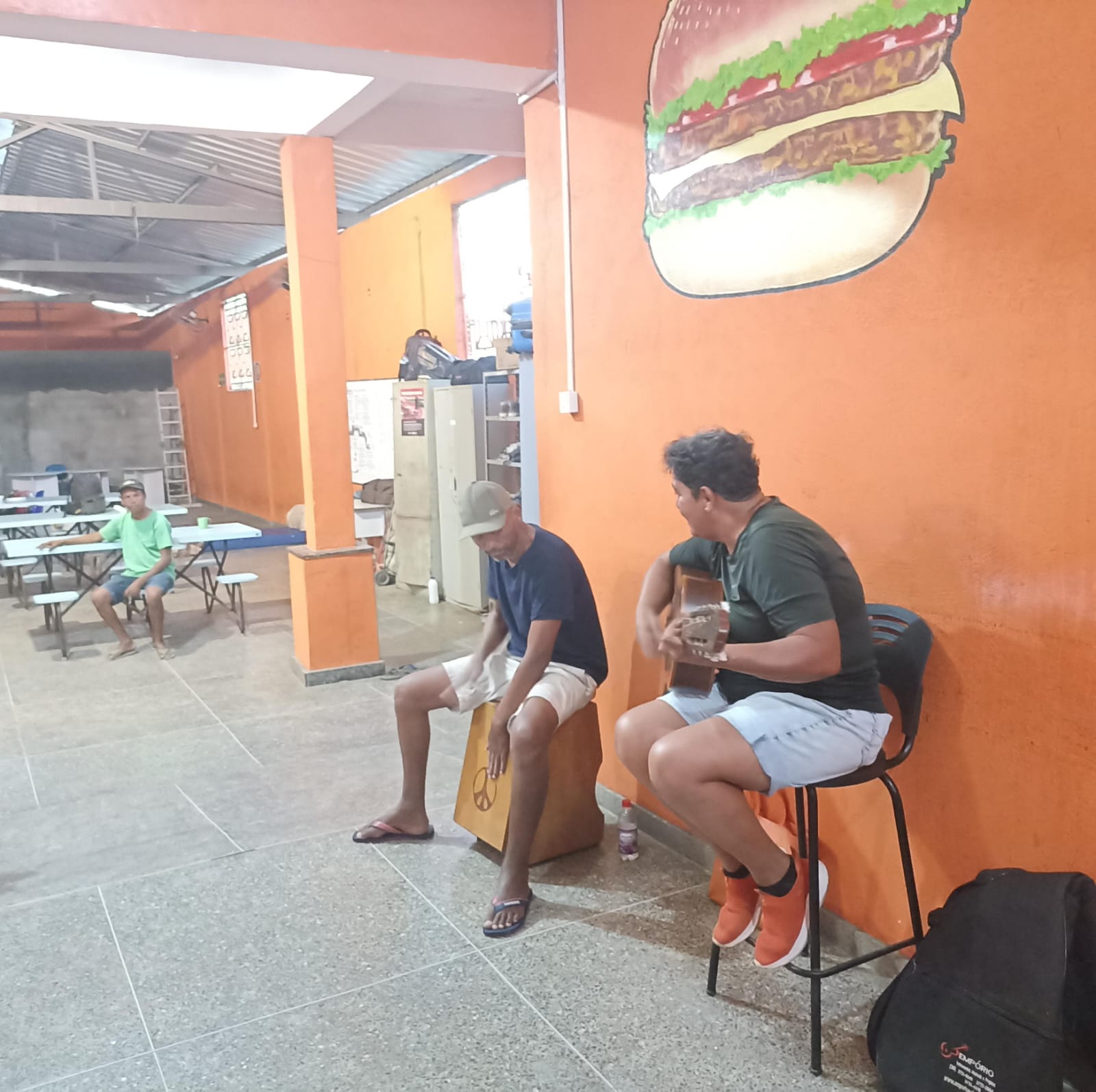 Em uma demonstração de generosidade e parceria, Leonardo Alves, proprietário da hamburgueria Burguer House, ofereceu deliciosos hambúrgueres aos usuários do Centro Pop. A noite foi embalada por uma apresentação musical da cantora Maria de Fátima, servidora pública do equipamento, e do assistido Clebson, criando um ambiente acolhedor e alegre.