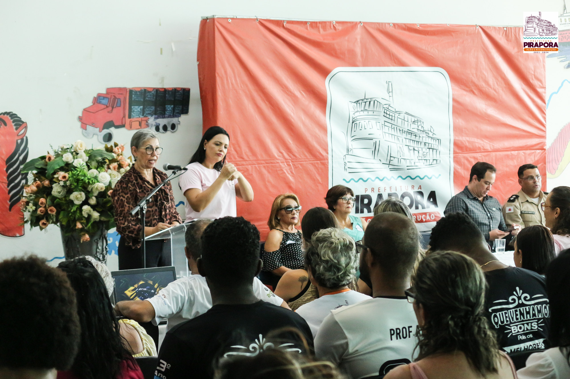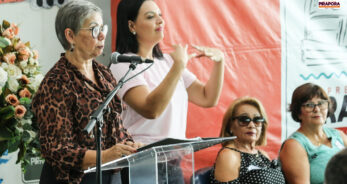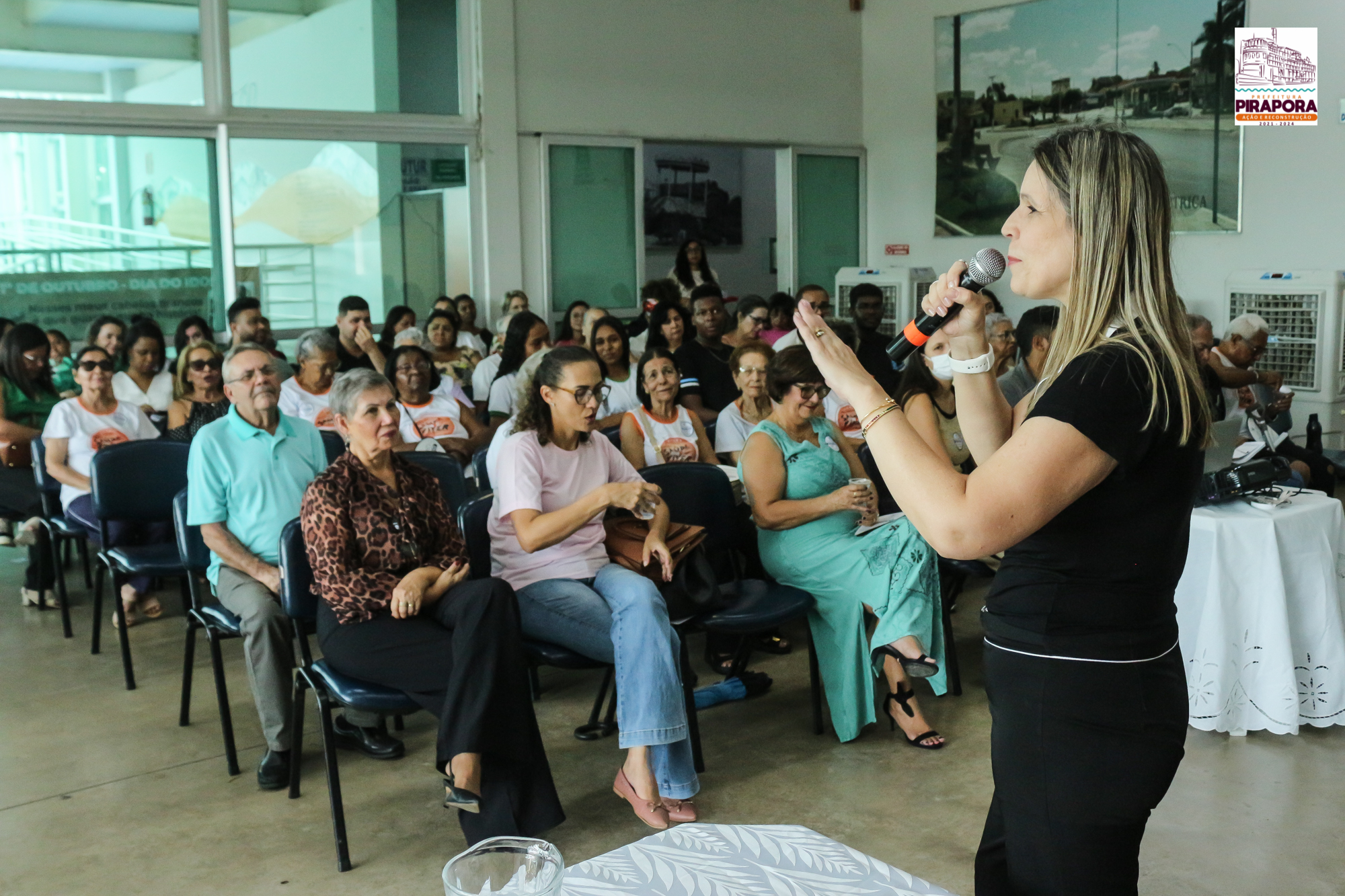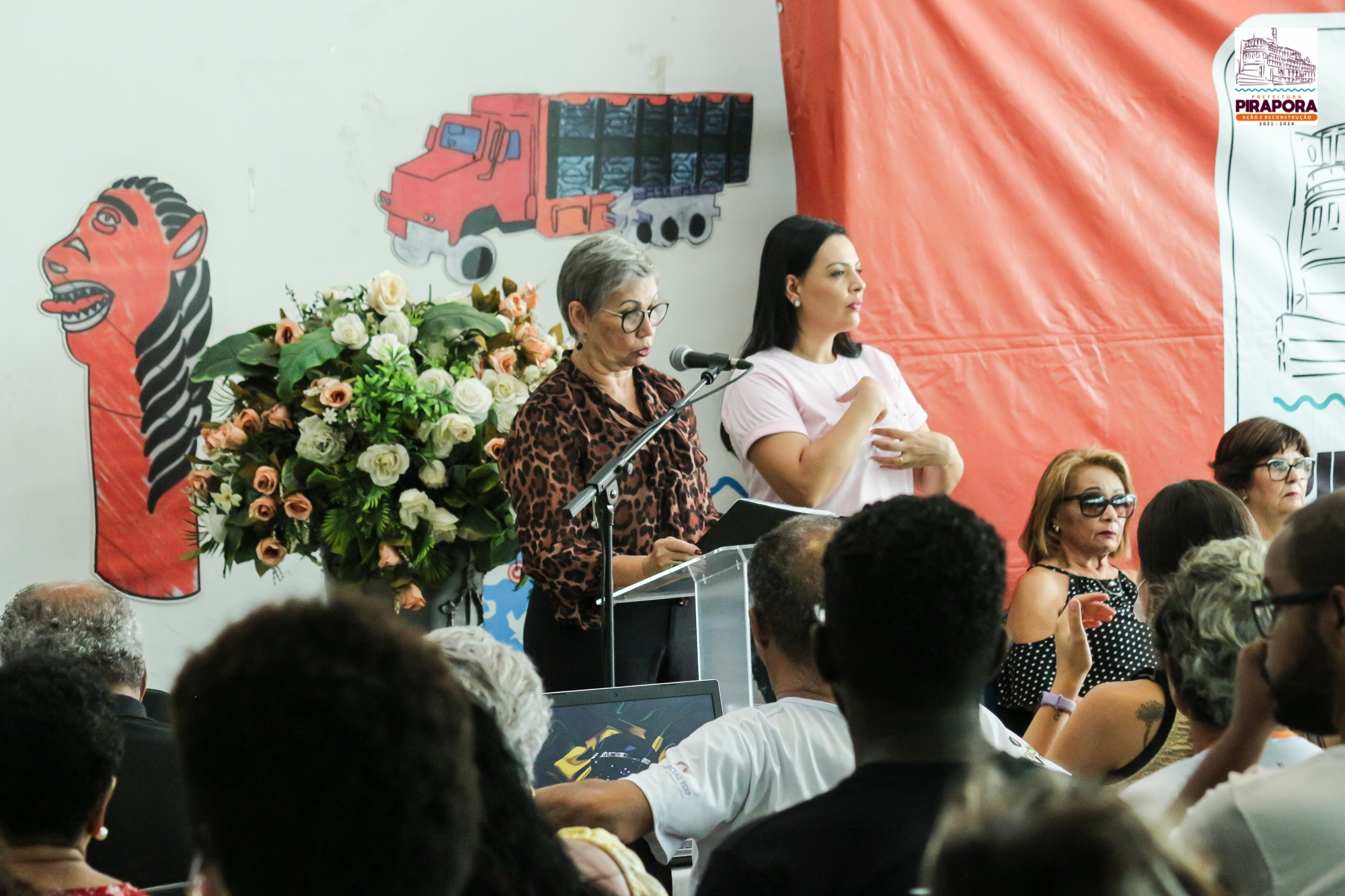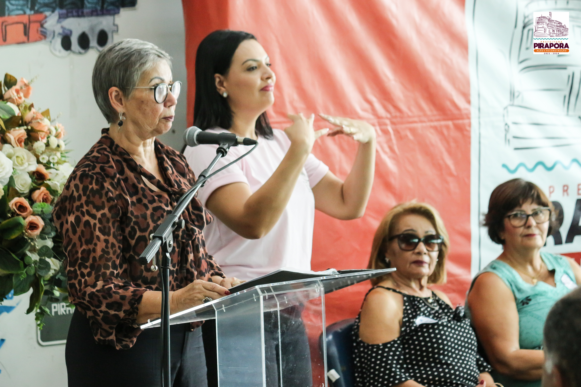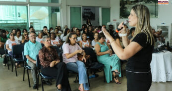 A secretária da Sefam, Bilu Diniz, falou sobre a valorização do idoso e convidou todos os presentes a refletir sobre como derrubar as barreiras do idadismo.