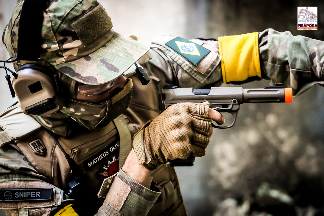 Já reconhecido como modalidade esportiva no Brasil, por meio da Lei nº 7.545/2024, o airsoft é um jogo que exige estratégia dos participantes em simulações de operações policiais, militares ou apenas de recreação. Nas disputas, os jogadores utilizam armas de pressão que são réplicas bem fiéis aos modelos utilizados nos combates reais. No entanto, elas não oferecem riscos aos usuários, já que a munição utilizada são esferas plásticas.