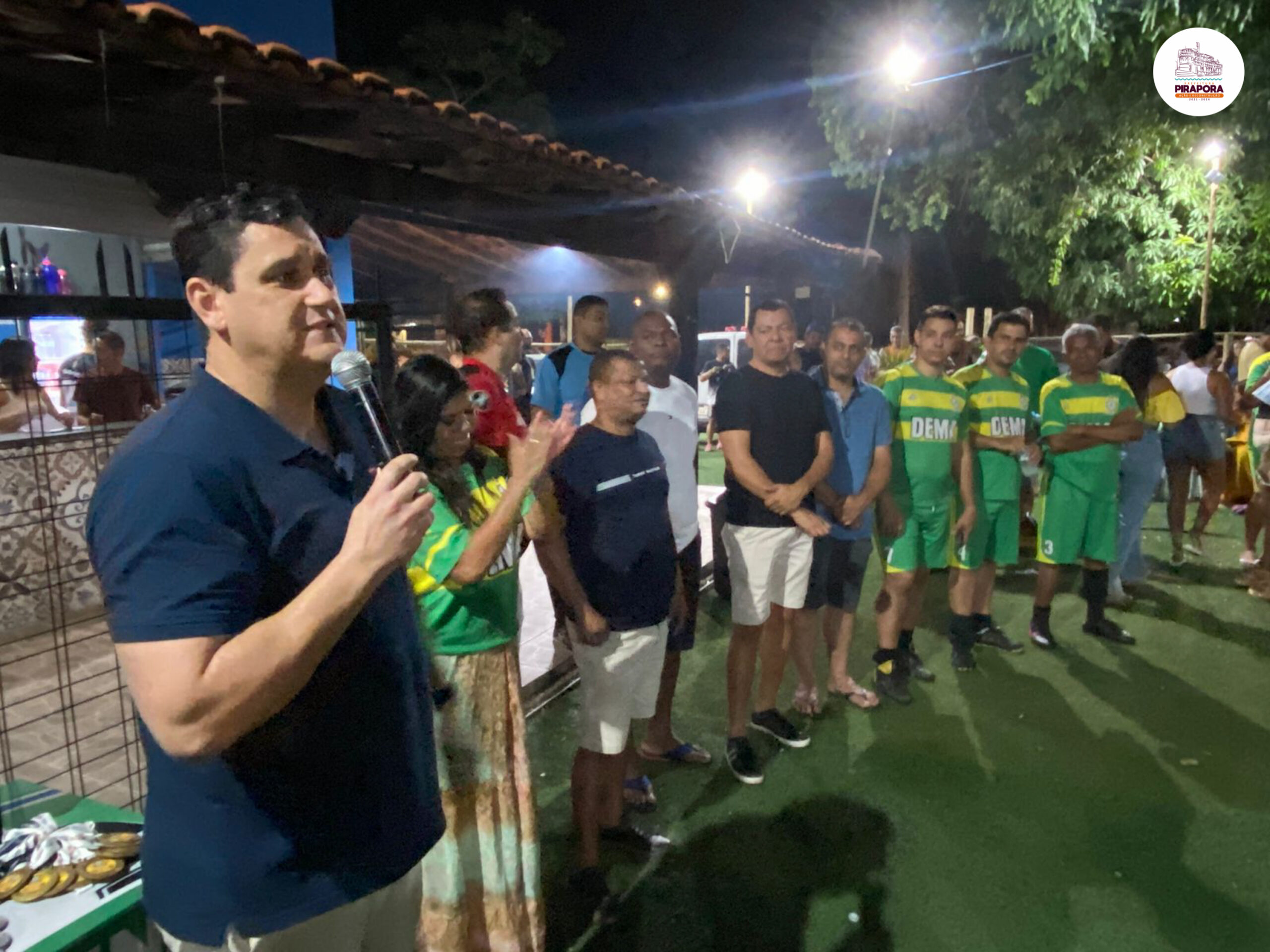 O prefeito Alex César, o presidente da Câmara, vereador Maurisim e os secretários Hélio Júnior e Rafael Lana prestigiaram o secretário de Esporte, Alan Gitirana, na cerimônia de premiação das duas melhores equipes. O evento foi encerrado com os shows do Grupo Encosta e de Negruxo.
